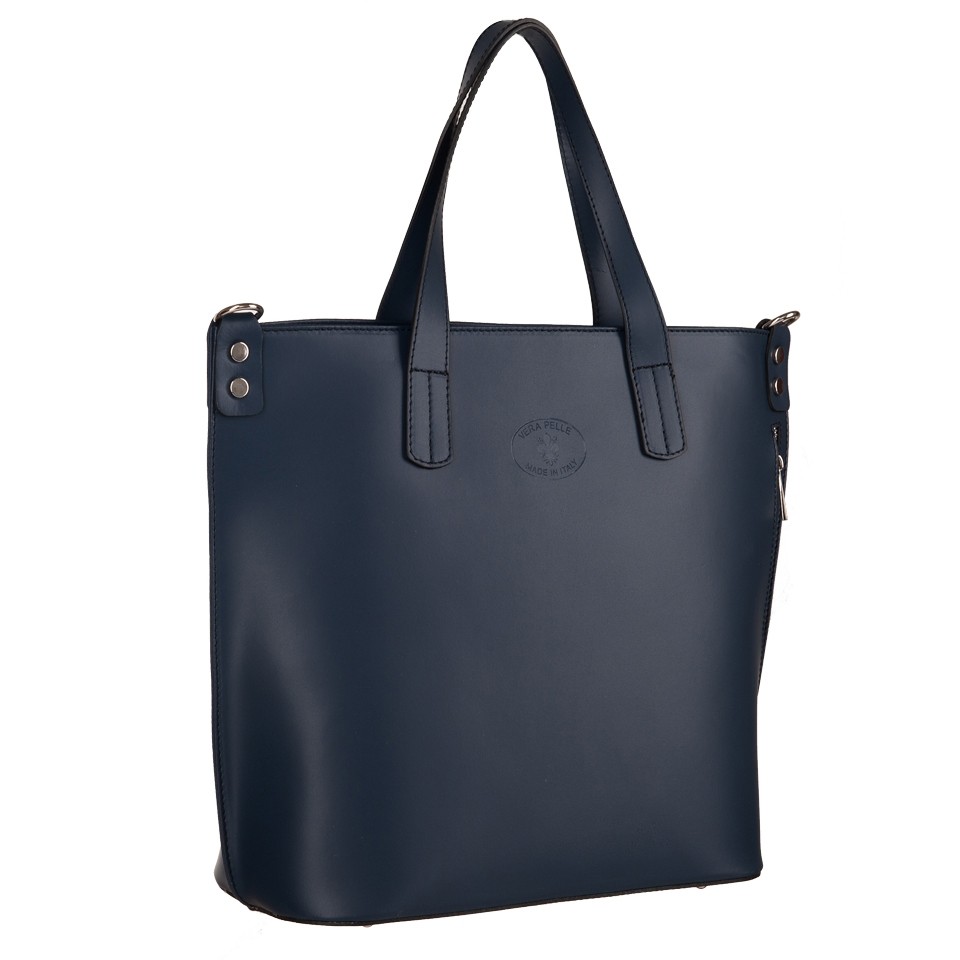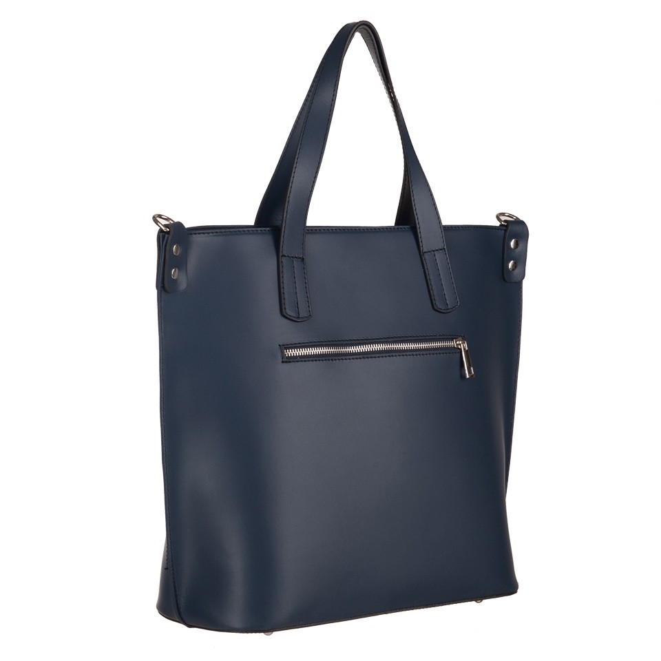 GENUINE LEATHER - MADE IN ITALY. Włoska A4 klasyczna, skórzana torebka wykonana z wysokogatunkowej matowej naturalnej skóry. Zamykana na zamek na całej szerokości, w środku mocna, czarna materiałowa podszewka. Torebka jednokomorowa, wewnątrz 2 x kieszonka na zamek + dodatkowa kieszonka na telefon lub drobiazgi + 2 x mała wsuwna kieszeń. Z tyłu pojemna kieszeń na zamek + pionowa kieszonka z przodu. Torebka od spodu usztywniona i podbita metalowymi nóżkami. Dodatkowy doczepiany pasek o długości 92 cm. Metalowe elementy wykończenia w kolorze srebrnym.