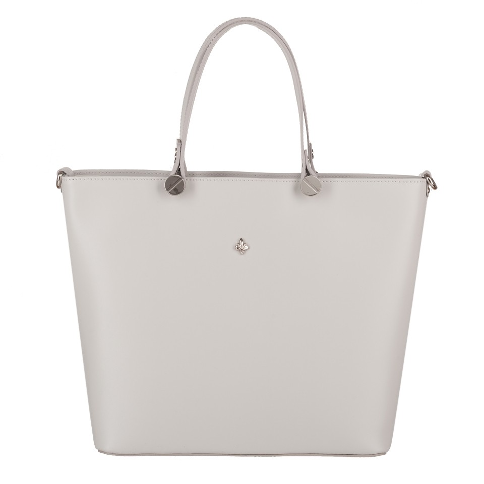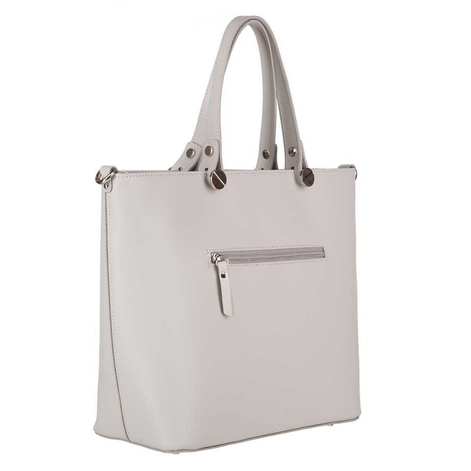 GENUINE LEATHER - MADE IN ITALY. Włoska A4 klasyczna, skórzana torebka wykonana z wysokogatunkowej naturalnej matowej skóry licowej. Zamykana na zamek na całej szerokości, w środku mocna, czarna materiałowa podszewka. Torebka jednokomorowa, wewnątrz jedna kieszonka na zamek + dodatkowa kieszonka na telefon + kieszeń na drobiazgi. Z tyłu pojemna kieszeń na zamek. Torebka od spodu usztywniona i podbita metalowymi nóżkami. Dodatkowy doczepiany pasek o długości 119 cm. Metalowe elementy wykończenia w kolorze srebrnym.
