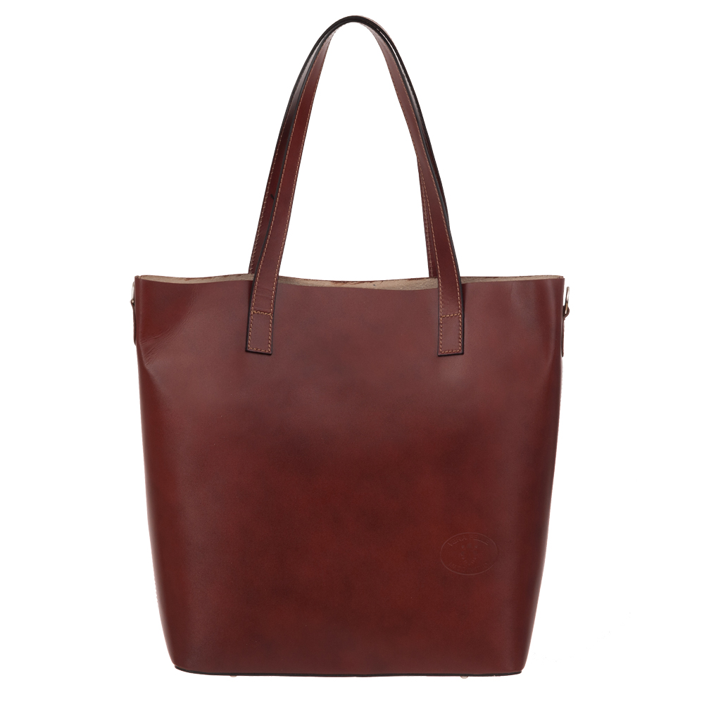 GENUINE LEATHER - HAND BAGS MADE IN ITALY. Włoska klasyczna, ręcznie wykonana skórzana torebka wykonana z wysokogatunkowej naturalnej skóry licowej. W środku wkład (komora) z mocnego materiału wykończonego skórą zamykany na suwak na całej szerokości + kieszonka na telefon. Torebka jednokomorowa. Wnętrze torebki wykończone surową skórą naturalną. Torebka od spodu lekko usztywniona. Dodatkowy doczepiany pasek o długości 100 cm. Elementy wykończenia w kolorze srebrnym.
