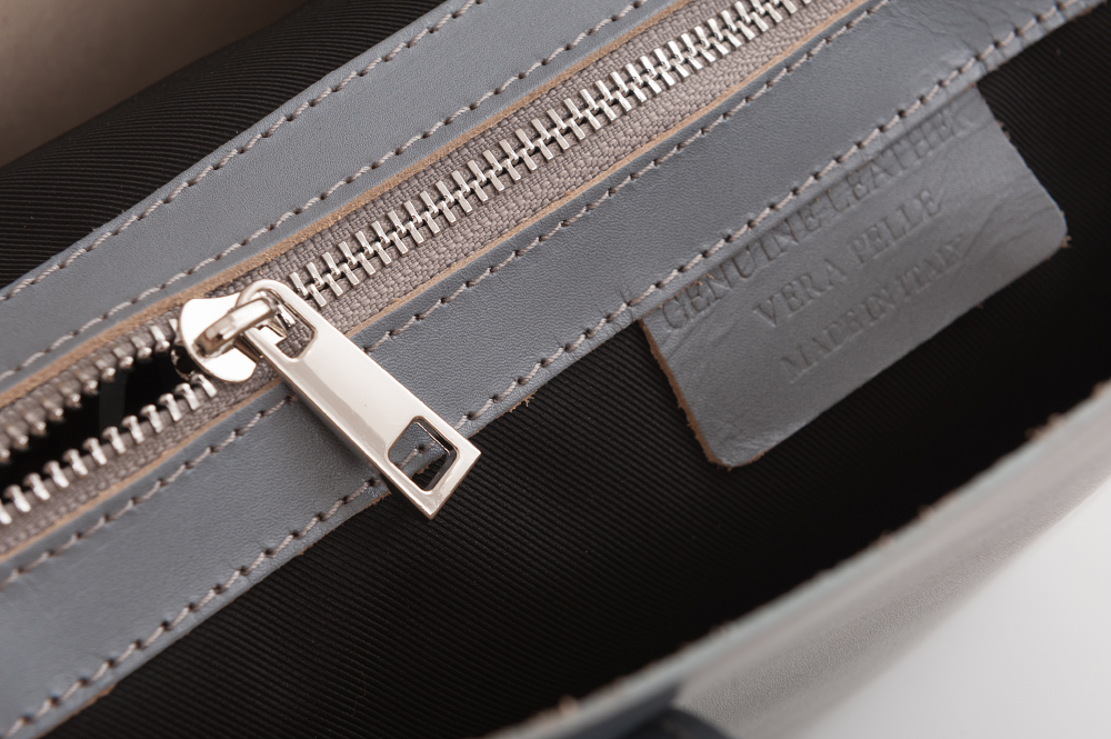 GENUINE LEATHER - HAND BAGS MADE IN ITALY. Włoska klasyczna, ręcznie wykonana skórzana torebka wykonana z wysokogatunkowej naturalnej skóry licowej. W środku wkład (komora) z mocnego materiału wykończonego skórą zamykany na suwak na całej szerokości + kieszonka na telefon. Torebka jednokomorowa. Wnętrze torebki wykończone surową skórą naturalną. Torebka od spodu lekko usztywniona. Dodatkowy doczepiany pasek o długości 100 cm. Elementy wykończenia w kolorze srebrnym.