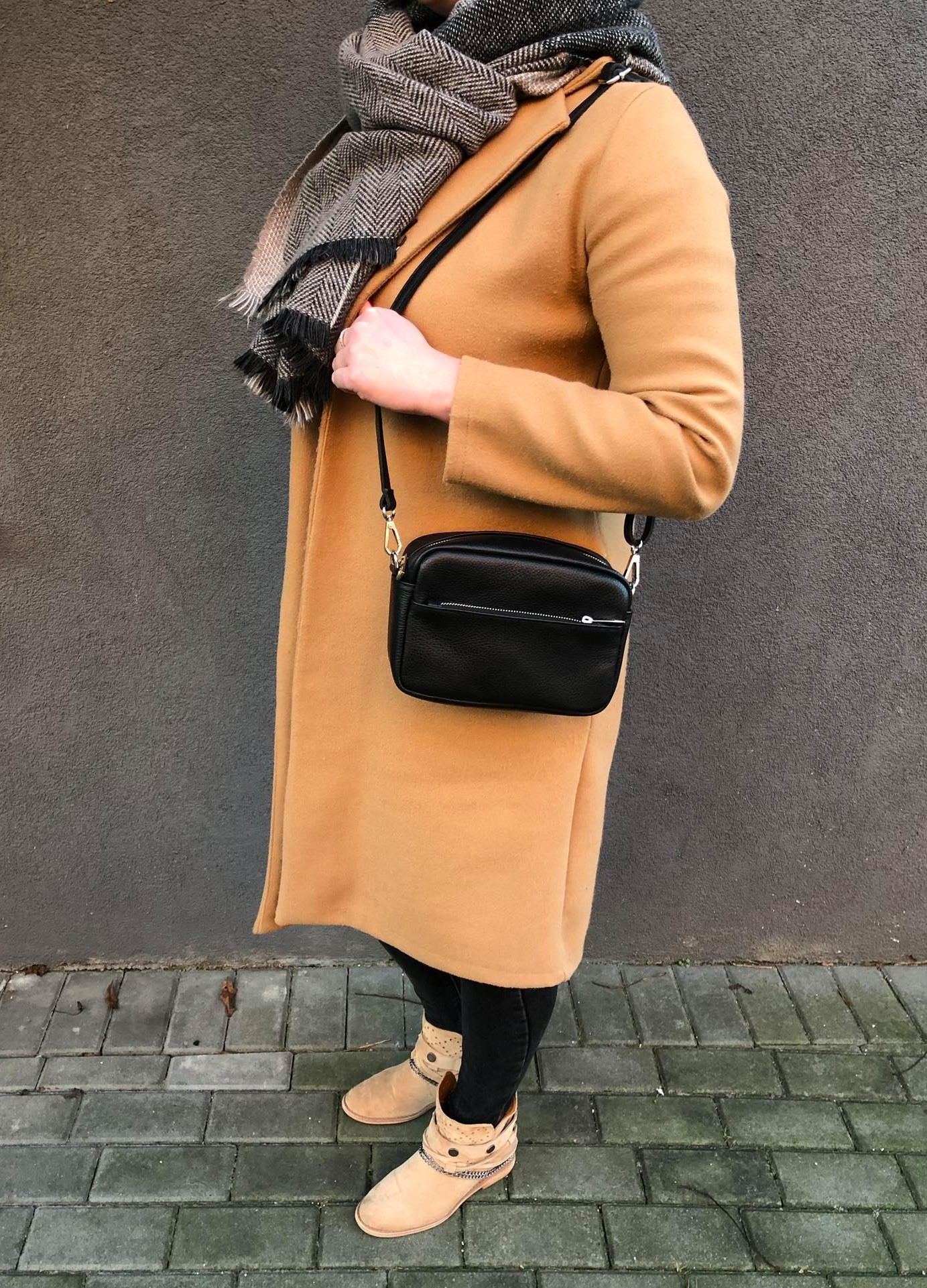 Włoska skórzana torebka listonoszka wykonana z wysokogatunkowej naturalnej skóry dolaro firmy VERA PELLE. Zamykana z góry na zamek. Torebka jednokomorowa, wewnątrz jedna kieszonka na zamek + kieszonka na telefon. Elementy wykończenia w kolorze srebrnym. Skórzany pasek z możliwością regulacji długości do 140 cm oraz całkowitego odpięcia, dzięki czemu torebkę można nosić jako elegancką kopertówkę. Z przodu torebki kieszonka na zamek.