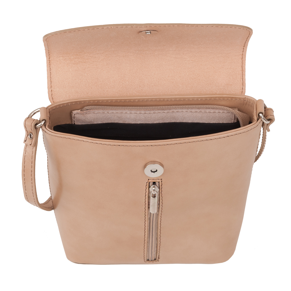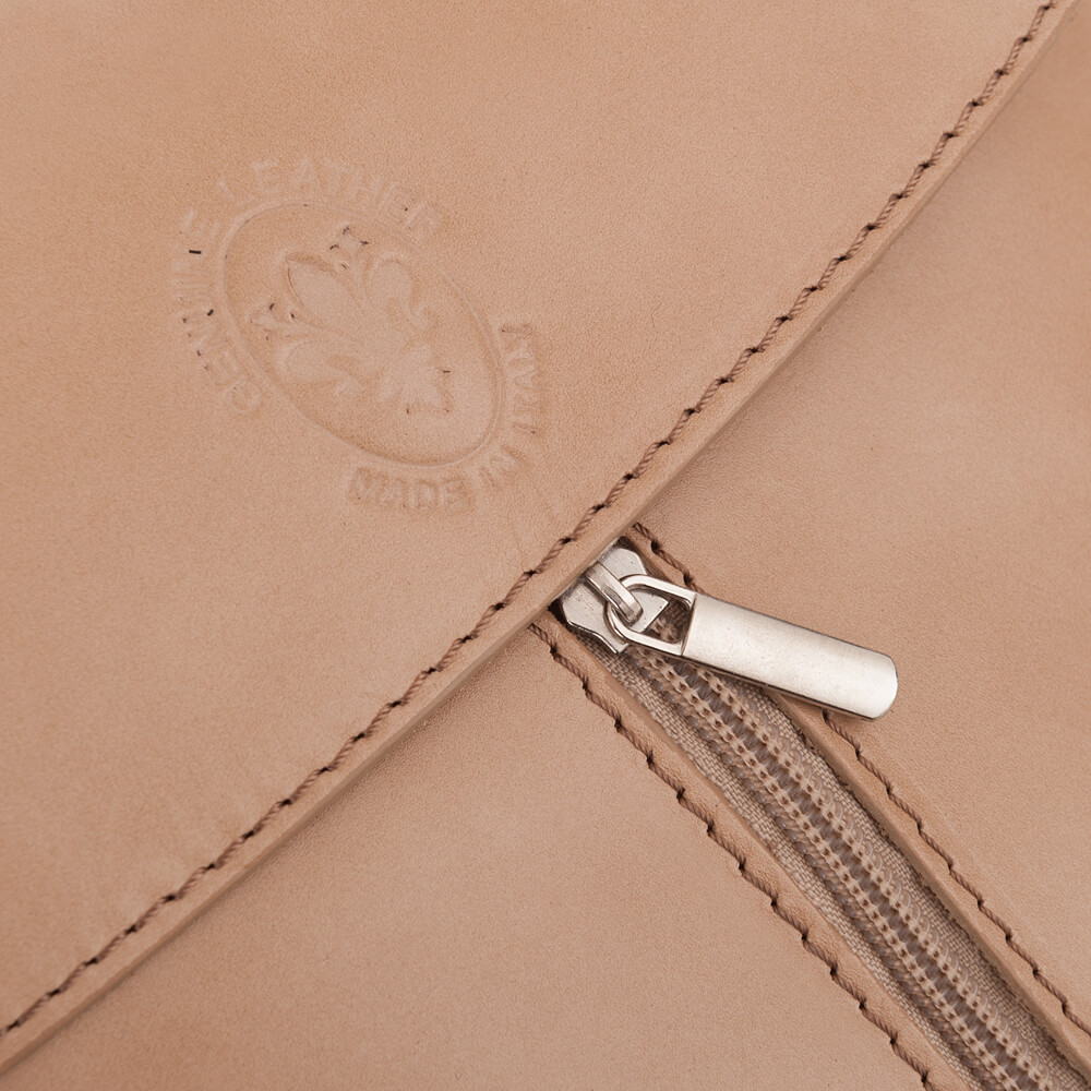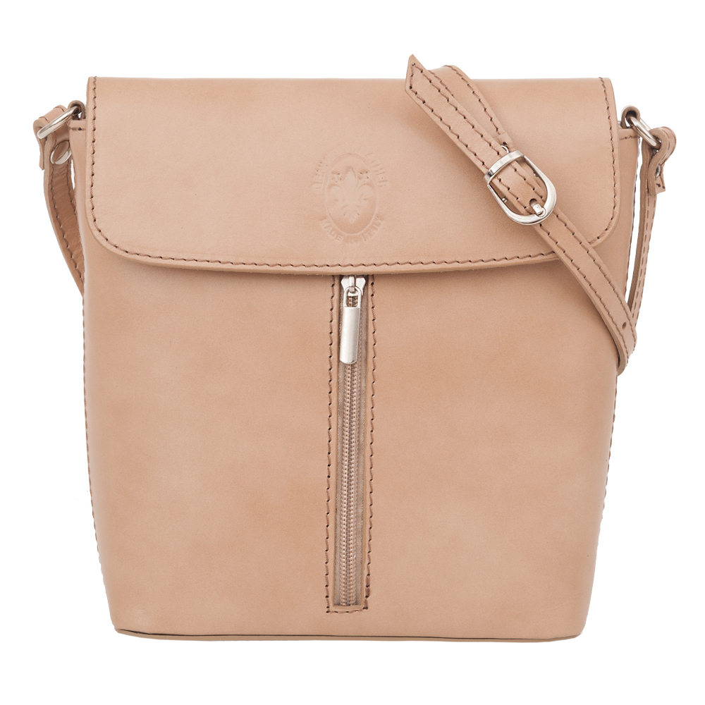 Włoska skórzana listonoszka wykonana z wysokogatunkowej naturalnej gładkiej skóry licowej firmy Vera Pelle. Zamykana z góry na suwak + klapka na magnes. Torebka jednokomorowa, wewnątrz jedna kieszonka na zamek + pionowa kieszonka z przodu torebki na suwak. Wnętrze wykończone trwałą , ciemną podszewką. Z przodu i z tyłu kieszonka na suwak. Długi, regulowany pasek umożliwia wygodne noszenie na ramieniu. Okucia w kolorze srebrnym.