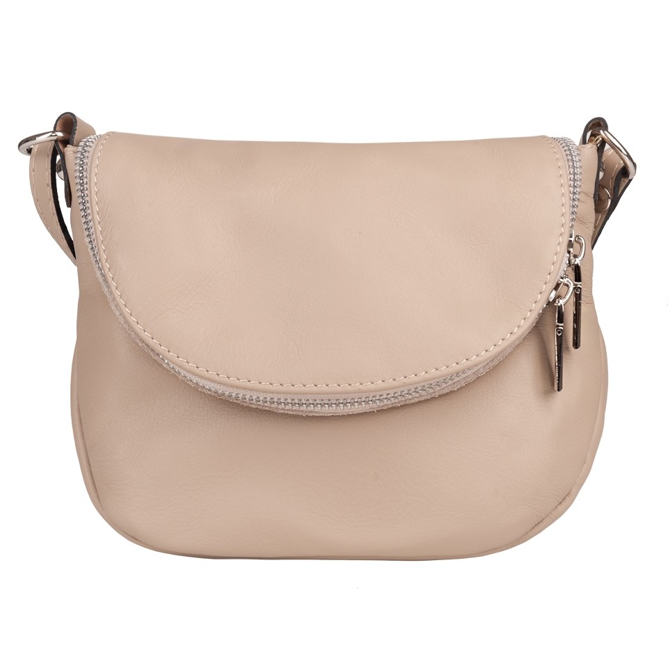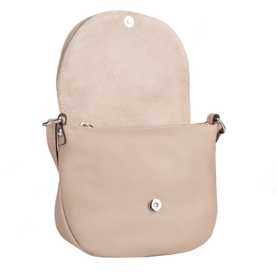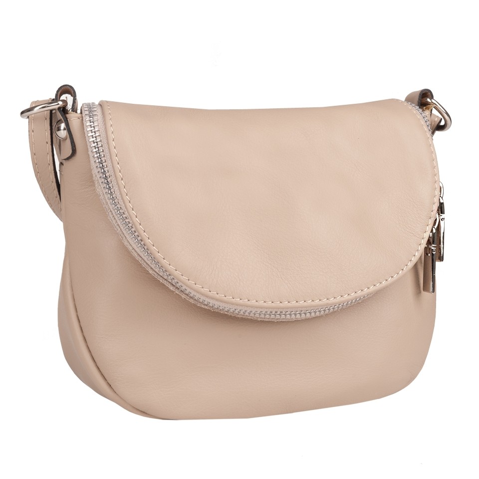 Włoska skórzana listonoszka wykonana z wysokogatunkowej naturalnej gładkiej skóry cielęcej. Zamykana na dużą klapę na magnes + suwak. Torebka jednokomorowa, wewnątrz jedna kieszonka na zamek. Wnętrze wykończone trwałą podszewką. Długi, regulowany pasek umożliwia wygodne noszenie na ramieniu. Dodatkowa kieszeń w klapie torebki na suwak.