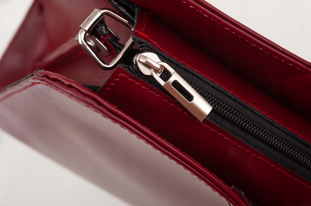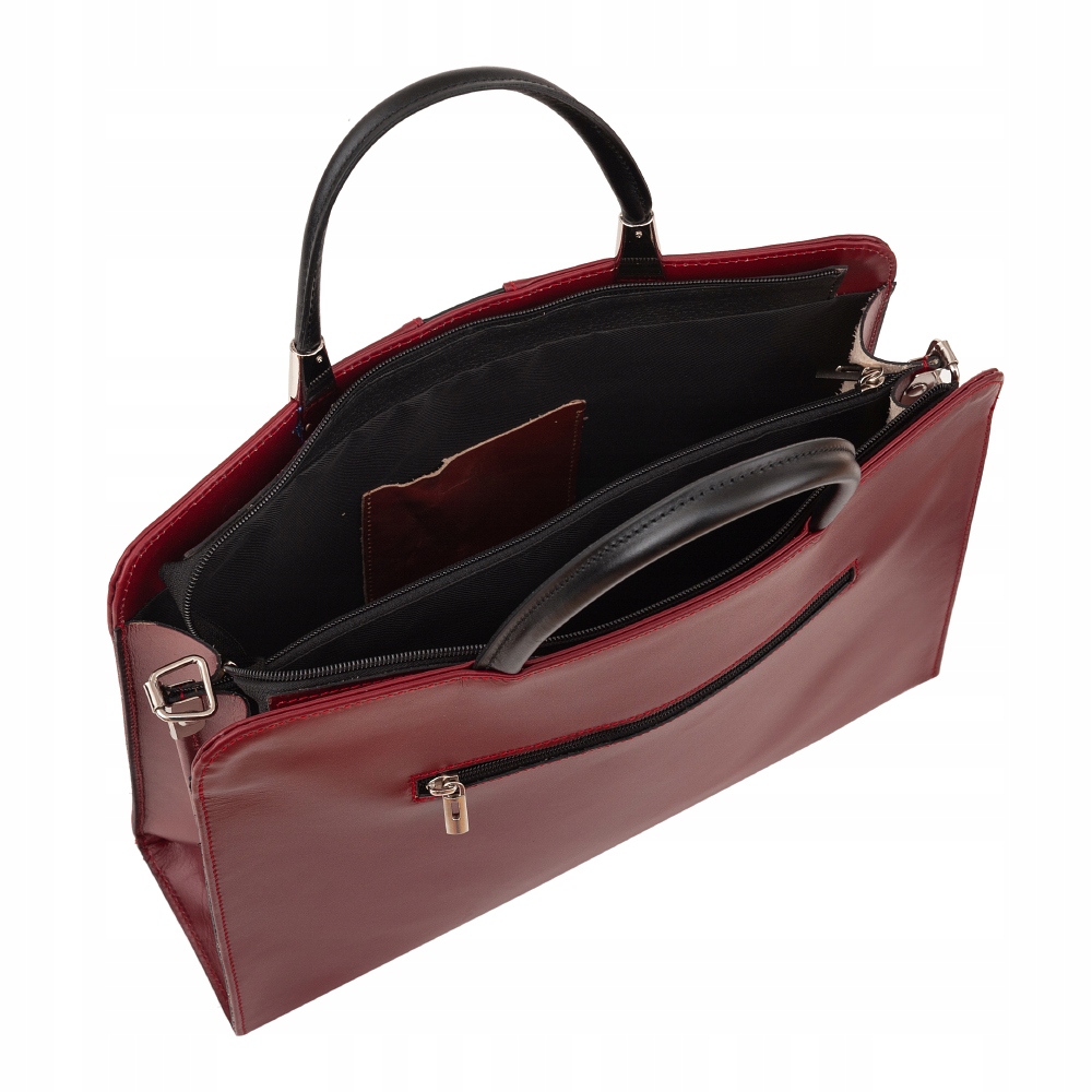 Włoska klasyczna A4 skórzana teczka / aktówka wykonana z wysokogatunkowej naturalnej gładkiej skóry licowej. Zamykana z góry na suwak. Teczka dwukomorowa przedzieloną dużą kieszenią na suwak na całej szerokości. Wewnątrz jedna kieszonka na zamek, jedna na telefon. Wnętrze wykończone trwałą, ciemną podszewką. Teczka od spodu usztywniona oraz podbita ćwiekami, co chroni ją przeciw uszkodzeniom. Elementy wykończenia w kolorze srebrnym. Dodatkowy długi, regulowany pasek na ramię o długości 54 - 104 cm.