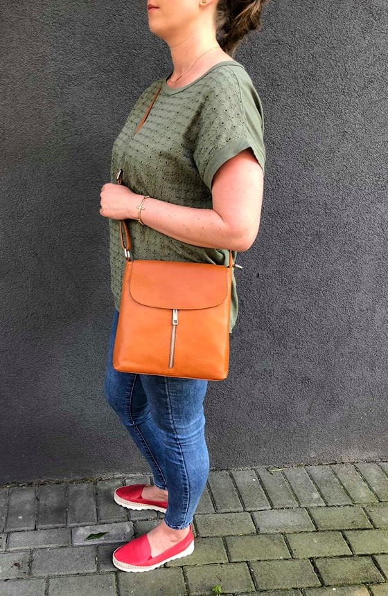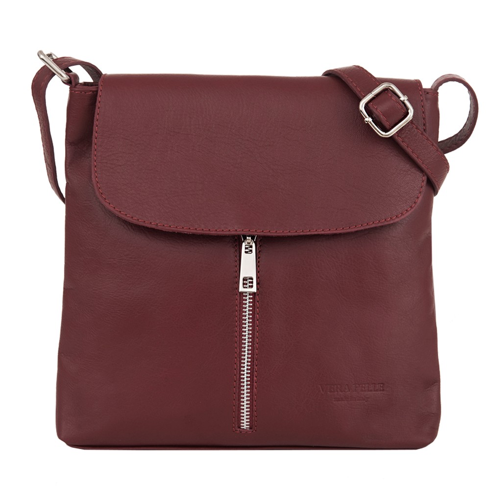 Włoska skórzana duża torebka / listonoszka wykonana z wysokogatunkowej naturalnej miękkiej skóry cielęcej. Zamykana od góry na zamek + klapka. Torebka jednokomorowa, wewnątrz dodatkowo jedna kieszonka na zamek + kieszonka na telefon + z tyłu torebki kieszonka na suwak. Wnętrze wykończone trwałą podszewką. Długi, regulowany pasek umożliwia wygodne noszenie na ramieniu lub przez ramię. Elementy wykończenia w kolorze srebrnym.