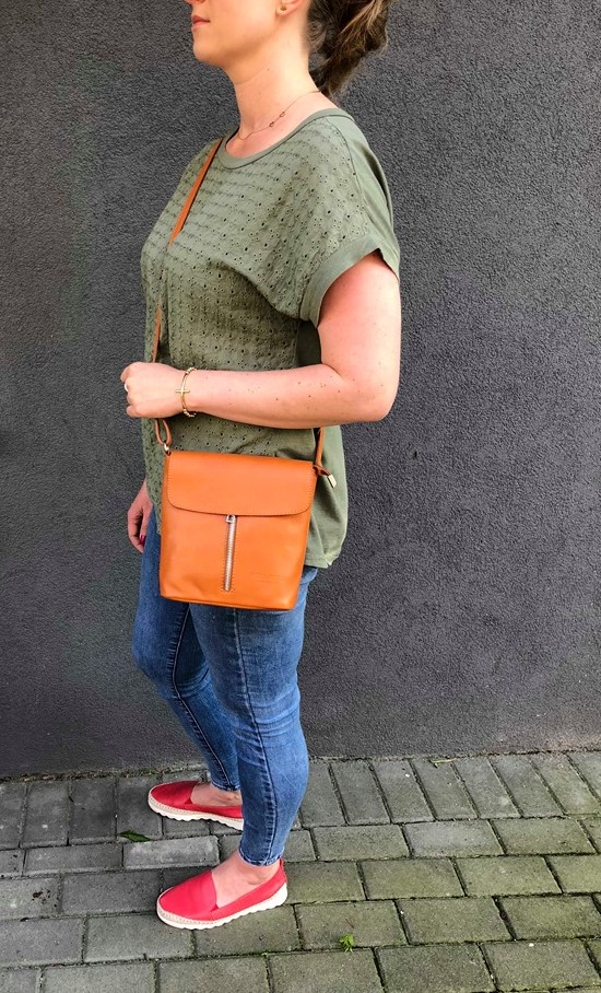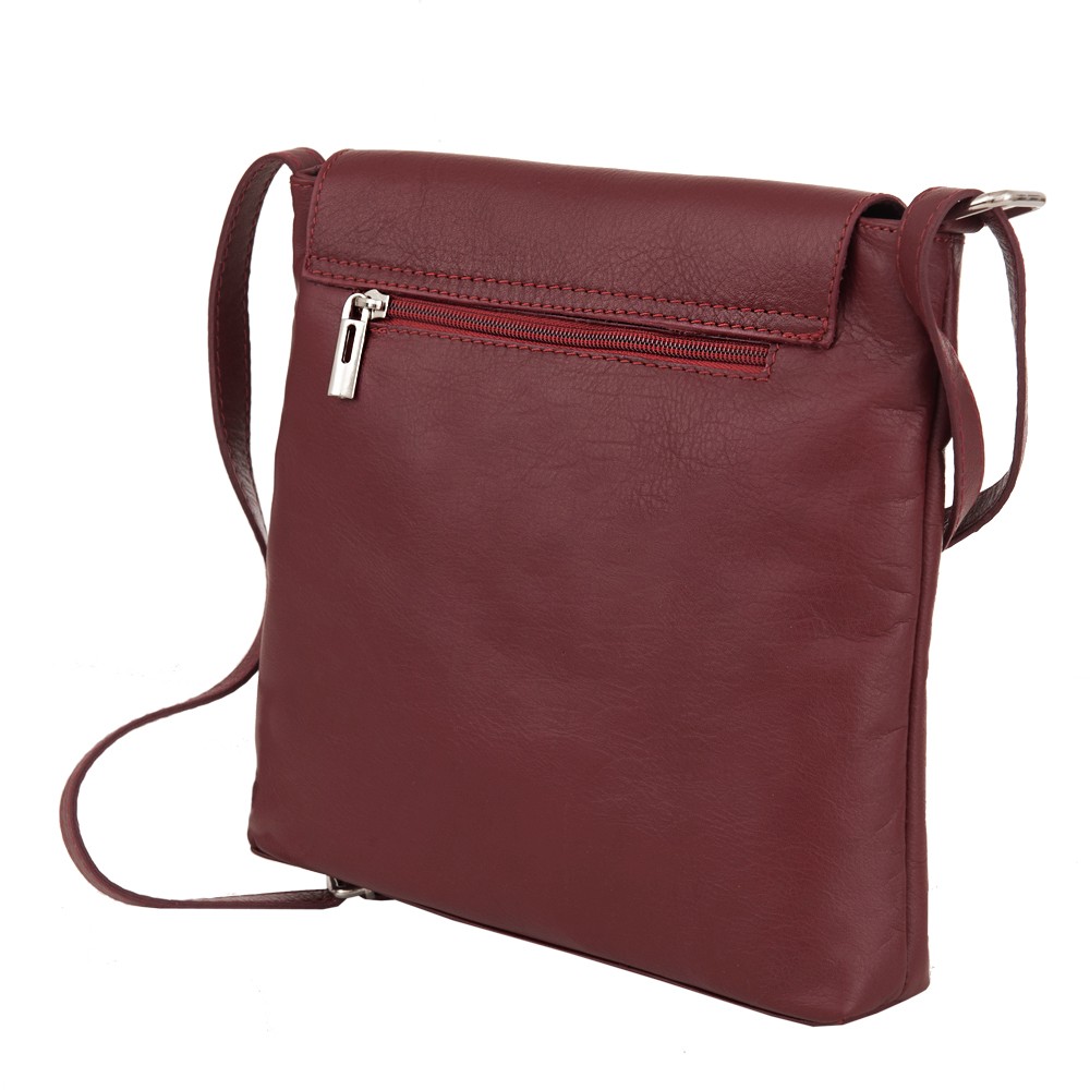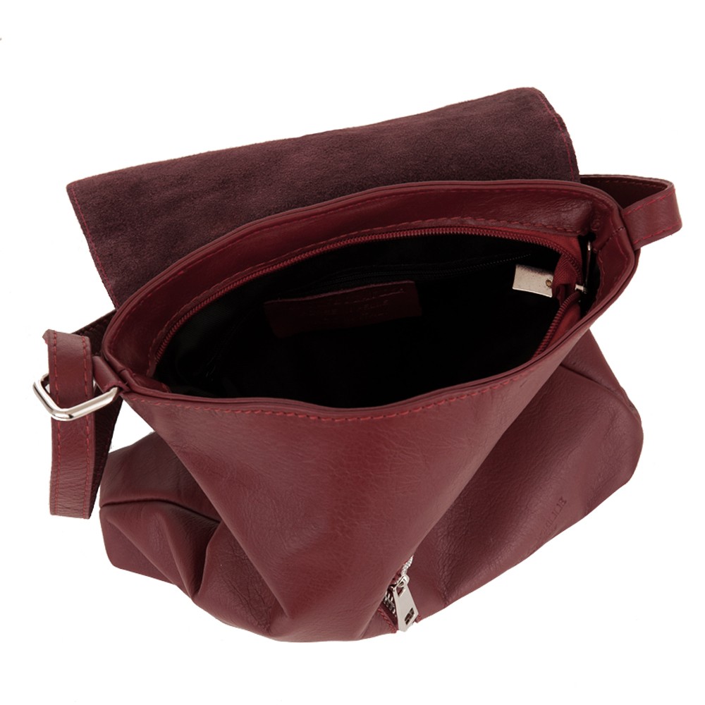 Włoska skórzana torebka / listonoszka wykonana z wysokogatunkowej naturalnej miękkiej skóry cielęcej. Zamykana od góry na zamek + klapka. Torebka jednokomorowa, wewnątrz dodatkowo jedna kieszonka na zamek + kieszonka na telefon + kieszonka z przodu + z tyłu torebki kieszonka na suwak. Wnętrze wykończone trwałą podszewką. Długi, regulowany pasek umożliwia wygodne noszenie na ramieniu lub przez ramię. Elementy wykończenia w kolorze srebrnym.