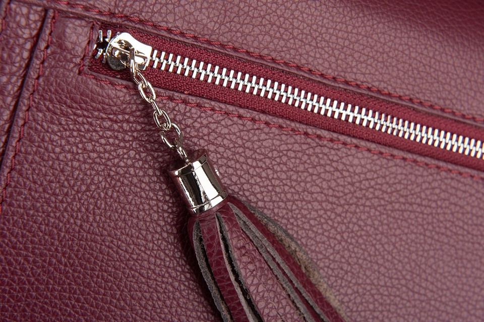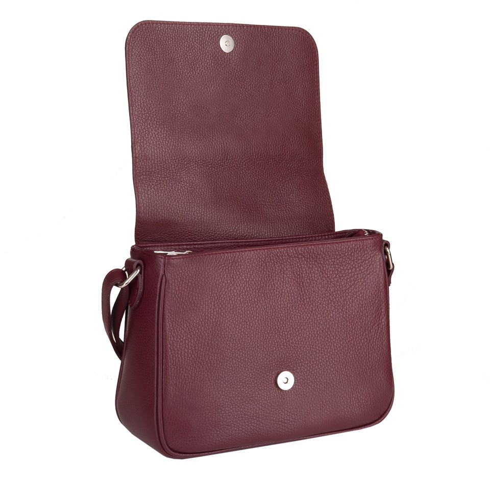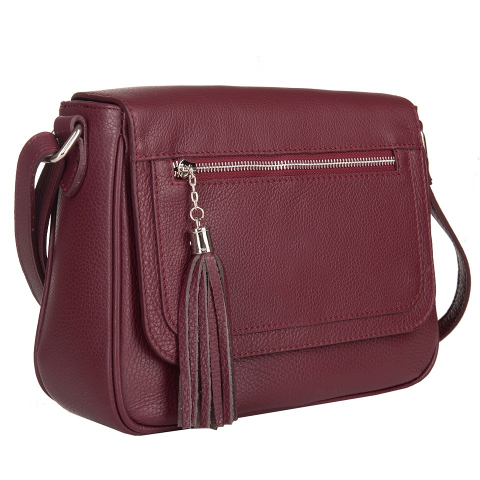 Vera Pelle - Włoska klasyczna skórzana torebka / listonoszka z klapą wykonana w całości ze skóry naturalnej. Skóra mocna, odporna na zarysowania. Zamykana z góry na zamek na całej szerokości + klapa na magnes. Torebka jednokomorowa + w środku kieszonka na zamek + kieszonka na telefon. Dodatkowo z tyłu torebki kieszeń na zamek + kieszonka z przodu na klapie zakończona modnym pękiem frędzli. Wnętrze wykończone trwałą, materiałową podszewką. Metalowe elementy w kolorze srebrnym. Dno lekko usztywnione. Pełna regulacja długości paska. Torebkę można swobodnie nosić przez ramię jako listonoszkę.