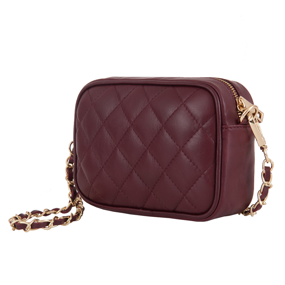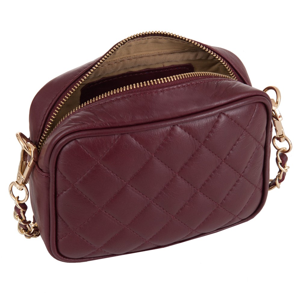 Włoska skórzana pikowana listonoszka wykonana z wysokogatunkowej naturalnej gładkiej skóry cielęcej VERA PELLE. Zamykana z góry na suwak. Torebka jednokomorowa, wewnątrz jedna kieszonka. Wnętrze wykończone trwałą podszewką. Elementy wykończenia w kolorze złotym. Pasek przepleciony naturalną skórą, z możliwością całkowitego odpięcia, dzięki czemu torebkę można nosić jako elegancką kopertówkę.