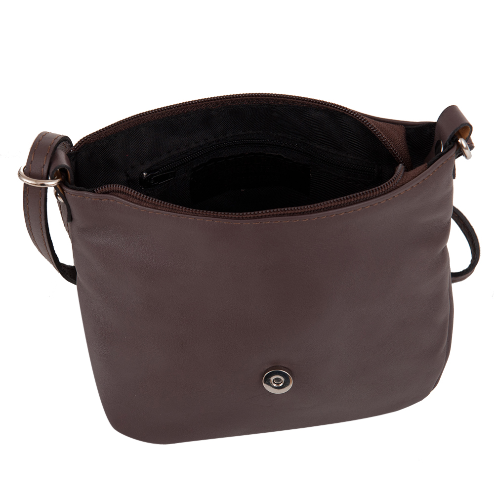 Włoska skórzana listonoszka wykonana z wysokogatunkowej naturalnej gładkiej skóry cielęcej. Zamykana na dużą klapę na magnes + suwak. Torebka jednokomorowa, wewnątrz jedna kieszonka na zamek. Wnętrze wykończone trwałą podszewką. Długi, regulowany pasek umożliwia wygodne noszenie na ramieniu. Dodatkowa kieszeń w klapie torebki na suwak.