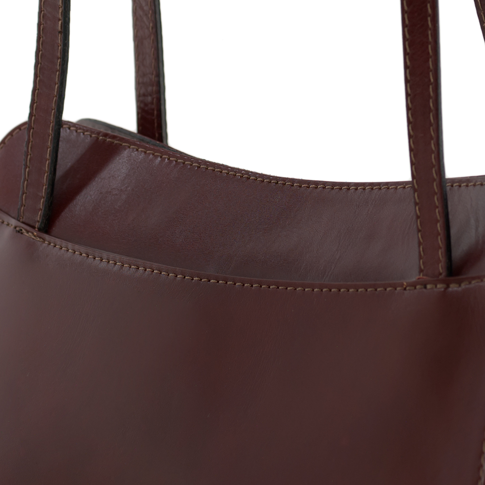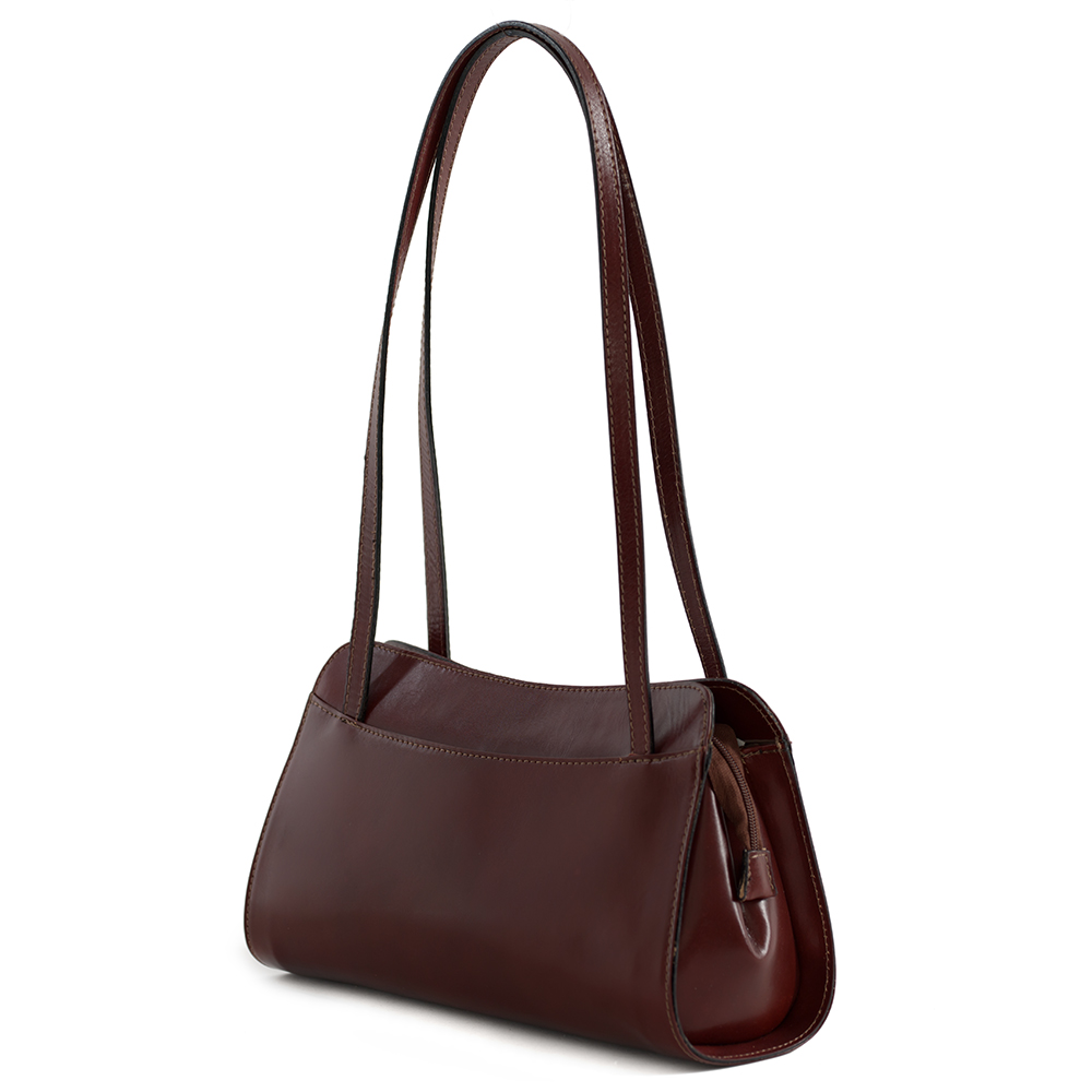 Włoska skórzana podłużna torebka wykonana z wysokogatunkowej naturalnej gładkiej skóry licowej. Zamykana z góry na suwak. Torebka jednokomorowa, wewnątrz przedzielona kieszonką na suwak + jedna kieszonka na zamek. Dodatkowo torebka posiada z przodu i z tyłu kieszonkę na magnes. Wnętrze wykończone trwałą podszewką.