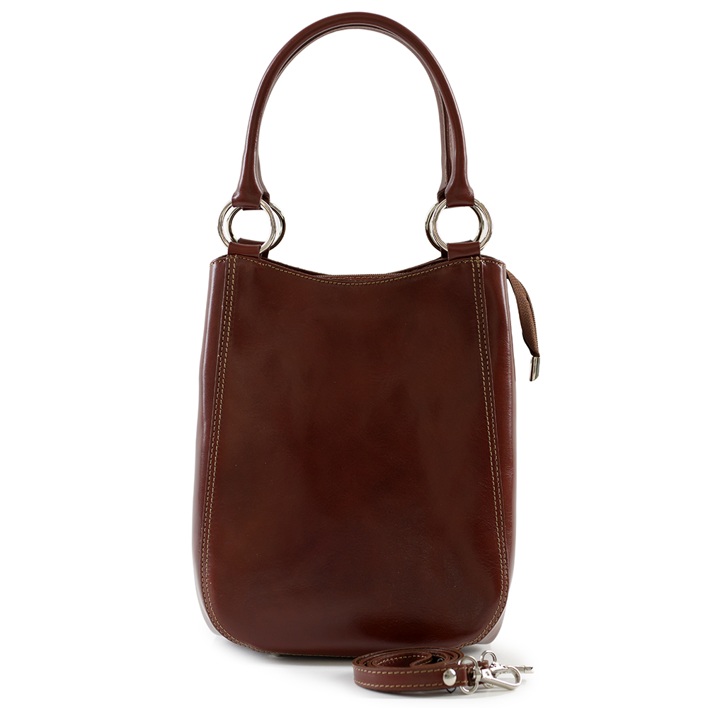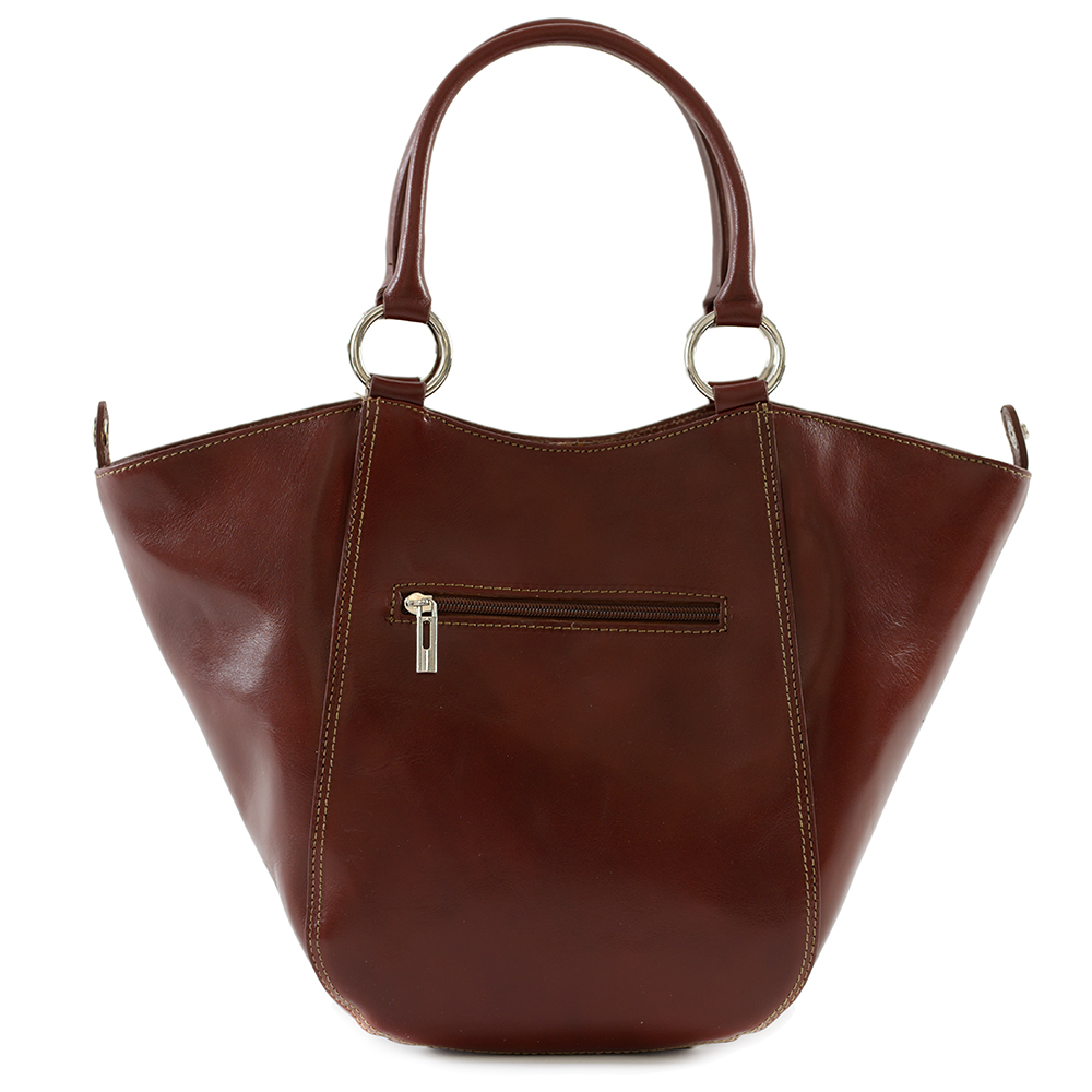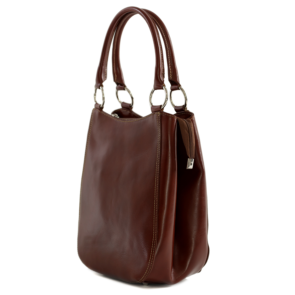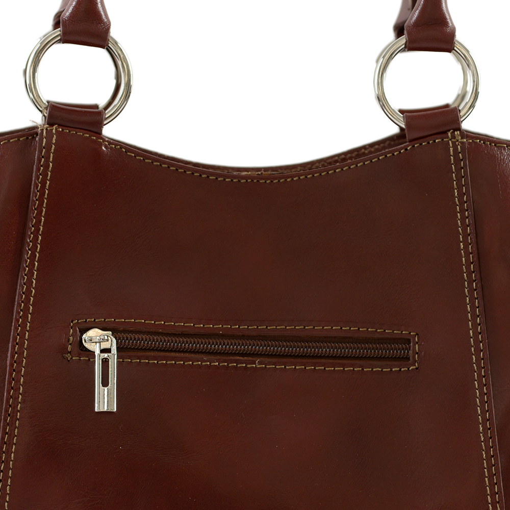Włoska skórzana oryginalna torebka wykonana z wysokogatunkowej naturalnej gładkiej skóry licowej firmy Pelle. Zamykana z góry na suwak. Torebka jednokomorowa przedzieloną dużą kieszenią na suwak. Wewnątrz jedna kieszonka na zamek oraz jedna na telefon. Wnętrze wykończone trwałą podszewką. Dzięki zatrzaskowi w środku torebki możliwość jej rozłożenia i noszenia na dwa sposoby. Torebka od spodu usztywniona oraz podbita ćwiekami, co chroni ją przeciw uszkodzeniom. Elementy wykończenia w kolorze srebrnym. Dodatkowy pasek o długości 92 cm.