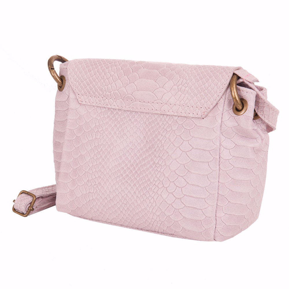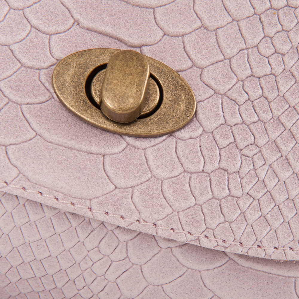 Włoska mała skórzana listonoszka wykonana z wysokogatunkowej naturalnej skóry z motywem krokodyla. Zamykana na klapę z przekrętką + zamek błyskawiczny. Torebka jednokomorowa, wewnątrz jedna kieszonka na zamek. Wnętrze wykończone trwałą podszewką. Długi, regulowany pasek umożliwia wygodne noszenie na ramieniu lub przez ramię. Elementy wykończenia w kolorze starego złota.