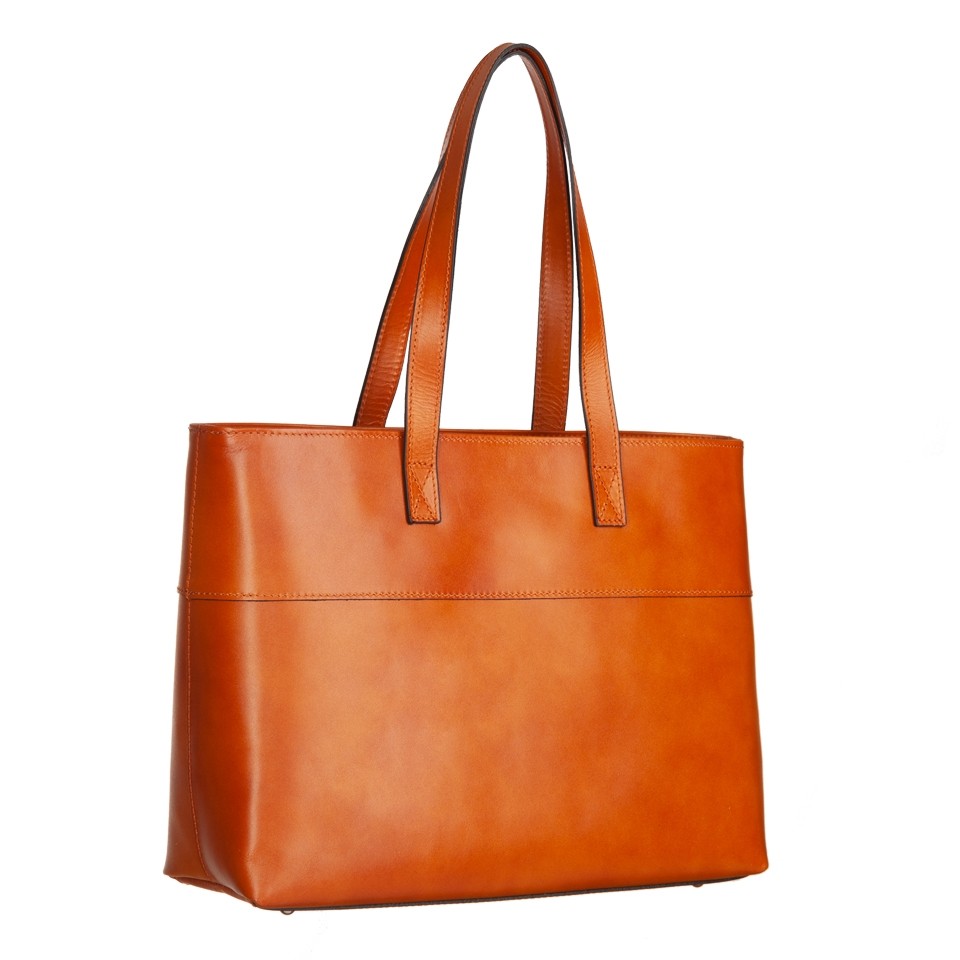 Vera Pelle - Włoska klasyczna skórzana torebka wykonana z wysokogatunkowej naturalnej gładkiej skóry licowej. Zamykana od góry na zamek na całej szerokości. Torebka jednokomorowa przedzieloną dużą kieszenią na suwak. Wewnątrz dodatkowo jedna kieszonka na zamek oraz jedna na telefon. Wnętrze wykończone trwałą, ciemną materiałową podszewką. Dodatkowo z tyłu torebki kieszonka na suwak. Torebka od spodu usztywniona oraz podbita ćwiekami, co chroni ją przeciw uszkodzeniom i zadrapaniom. Elementy wykończenia w kolorze srebrnym. Torebkę można swobodnie nosić na ramieniu dzięki optymalnie długim uszom. W komplecie dodatkowy długi pasek.