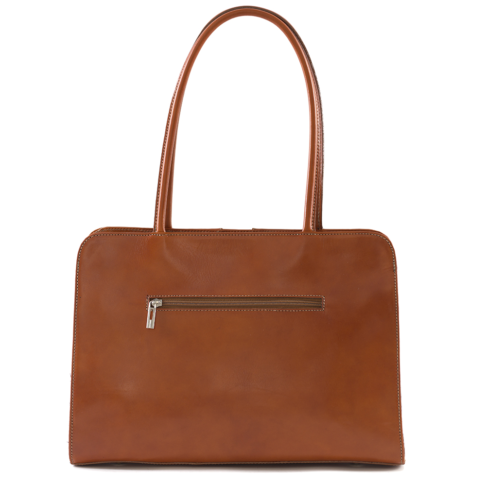 Włoska klasyczna A4 skórzana torebka / aktówka wykonana z wysokogatunkowej naturalnej gładkiej skóry licowej. Zamykana z góry na suwak. Torebka dwukomorowa przedzieloną dużą kieszenią na suwak na całej szerokości. Wewnątrz jedna kieszonka na zamek oraz jedna na telefon. Wnętrze wykończone trwałą podszewką. Dodatkowo z tyłu torebki kieszonka na suwak. Torebka od spodu usztywniona oraz podbita ćwiekami, co chroni ją przeciw uszkodzeniom. Elementy wykończenia w kolorze srebrnym.