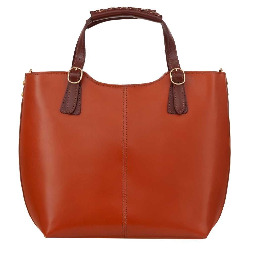 MODA IN ITALIA Włoska skórzana torebka shopper bag wykonana z wysokogatunkowej naturalnej gładkiej skóry licowej. Wygodny dostęp do środka. Zamykana od góry na suwak. Torebka jednokomorowa. Wewnątrz kieszonka na telefon + kieszeń na suwak. Od środka wykończona porządną czarną podszwką. Elementy wykończenia w kolorze złotym. Dodatkowy pasek o długości 96 cm.