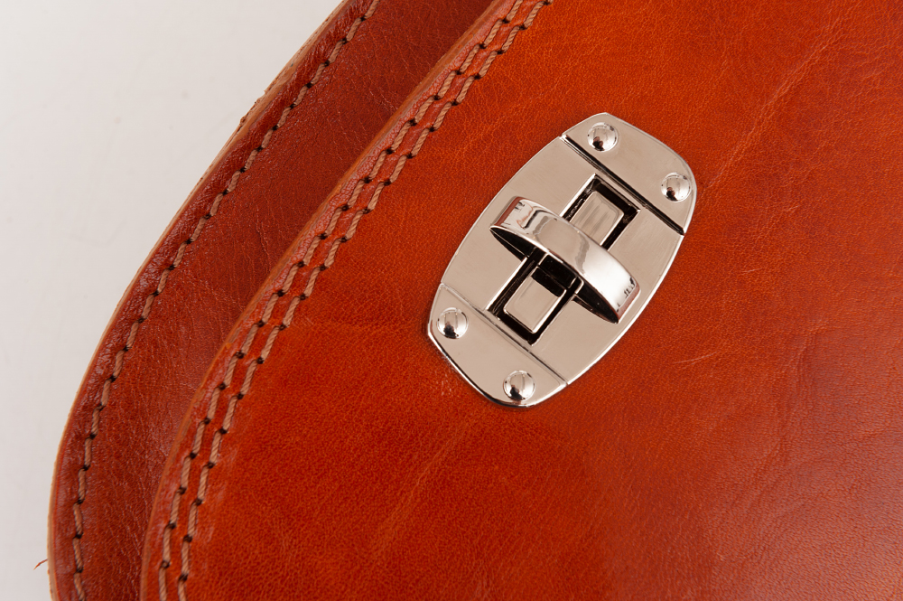 GENUINE LEATHER - VINTAGE - Włoska skórzana listonoszka wykonana z wysokogatunkowej naturalnej gładkiej skóry licowej firmy Vera Pelle. Zamykana z góry na zamek + klapa na przekrętkę. Torebka jednokomorowa, wewnątrz jedna mała kieszonka. Wnętrze wykończone surową skórą. Metalowe elementy w kolorze srebrnym.Długi regulowany pasek do max. 134 cm.