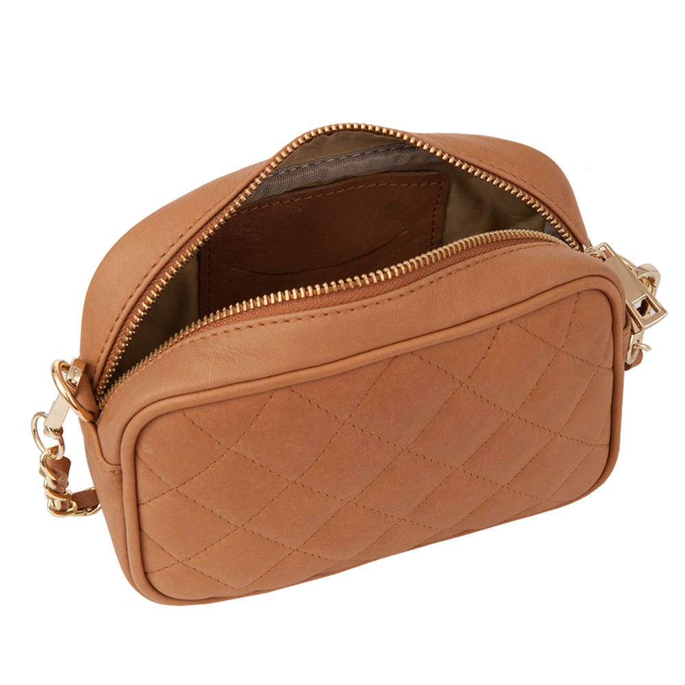Włoska skórzana pikowana listonoszka wykonana z wysokogatunkowej naturalnej gładkiej skóry cielęcej VERA PELLE. Zamykana z góry na suwak. Torebka jednokomorowa, wewnątrz jedna kieszonka. Wnętrze wykończone trwałą podszewką. Elementy wykończenia w kolorze złotym. Pasek przepleciony naturalną skórą, z możliwością całkowitego odpięcia, dzięki czemu torebkę można nosić jako elegancką kopertówkę.