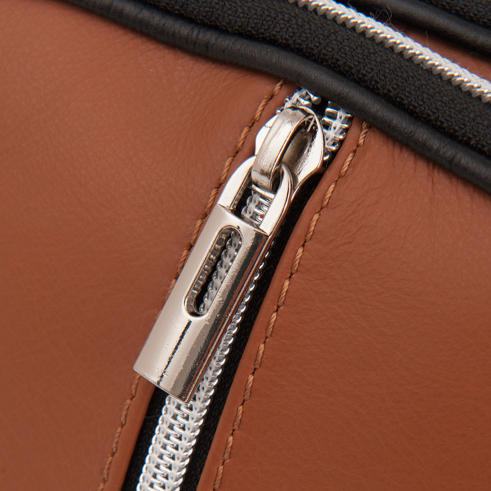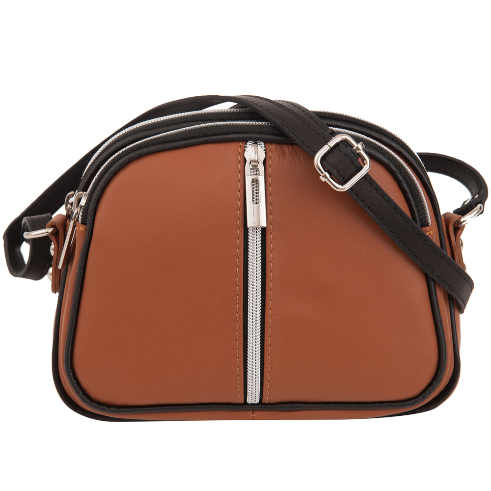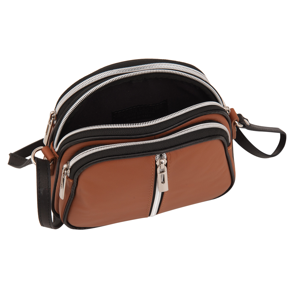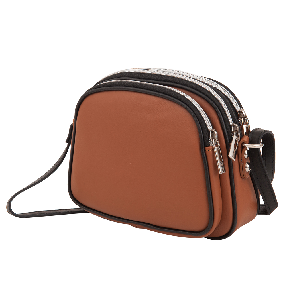 Włoska skórzana listonoszka wykonana z wysokogatunkowej naturalnej gładkiej skóry cielęcej. Zamykana z góry na suwaki. Trzy osobne przegródki zamykane na suwak + pionowa kieszonka na suwak z przodu. Wnętrze wykończone trwałą podszewką. Długi, regulowany pasek umożliwia wygodne noszenie na ramieniu.