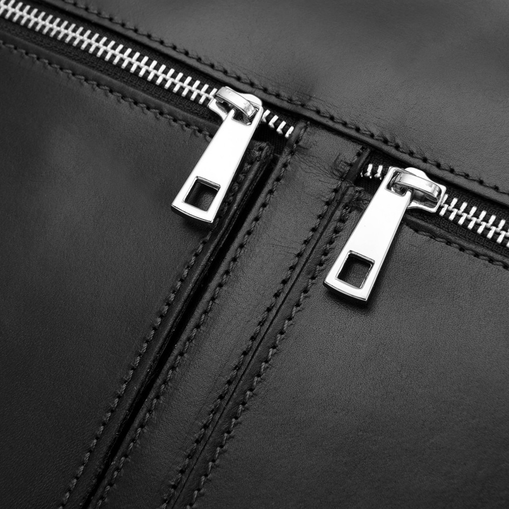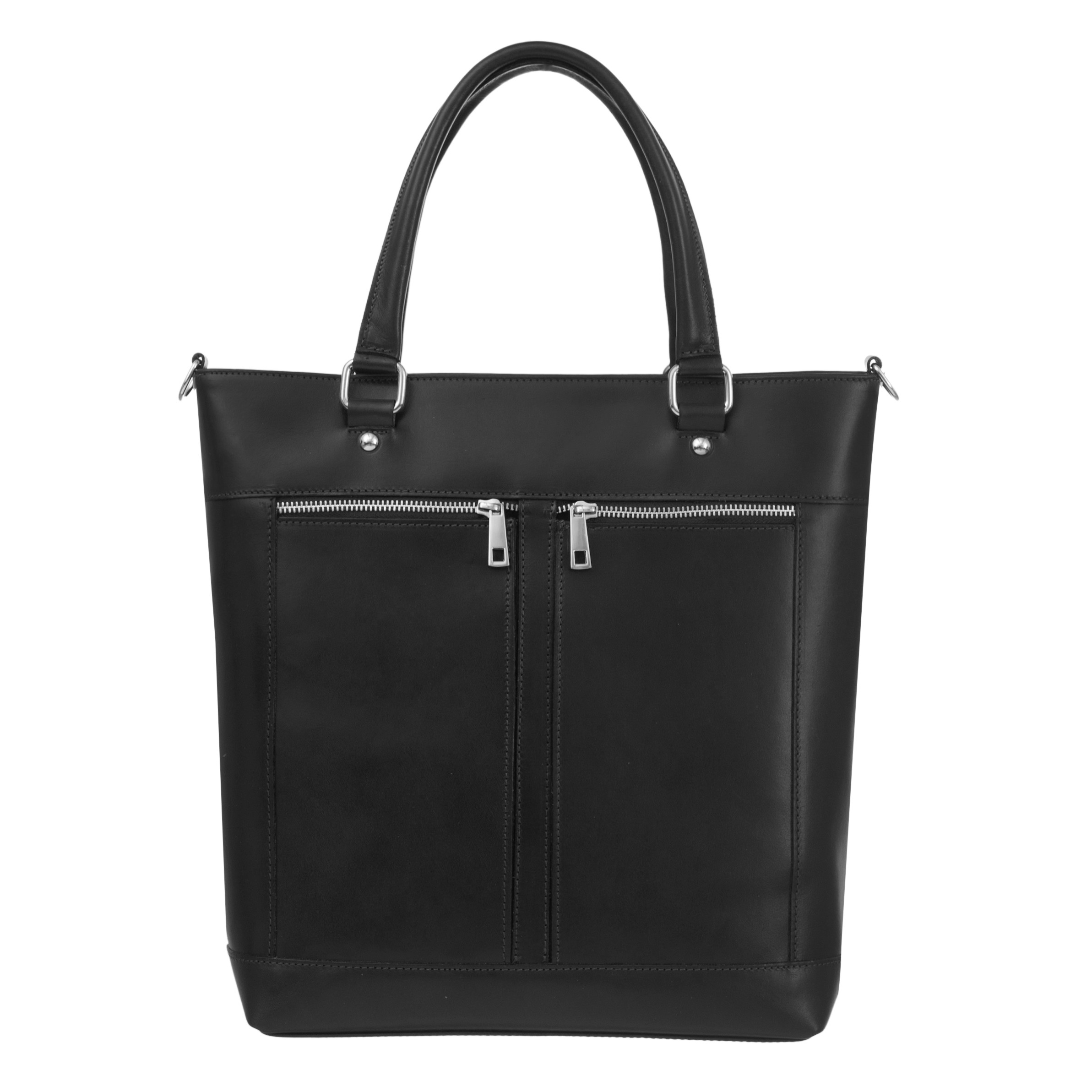 Włoska klasyczna A4 skórzana torebka wykonana z wysokogatunkowej naturalnej gładkiej skóry licowej. Zamykana z góry na suwak na całej szerokości. Torebka jednokomorowa. Wewnątrz kieszeń na zamek oraz jedna na telefon. Wnętrze wykończone trwałą, czarną podszewką. Dodatkowo z przodu torebki 2 kieszonki na suwak. Torebka od spodu usztywniona. Elementy wykończenia w kolorze srebrnym. Dodatkowy długi pasek na ramię o długości 95 cm.