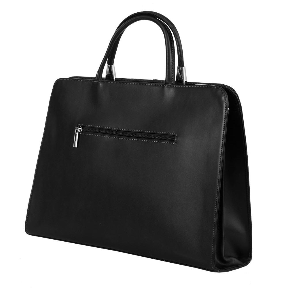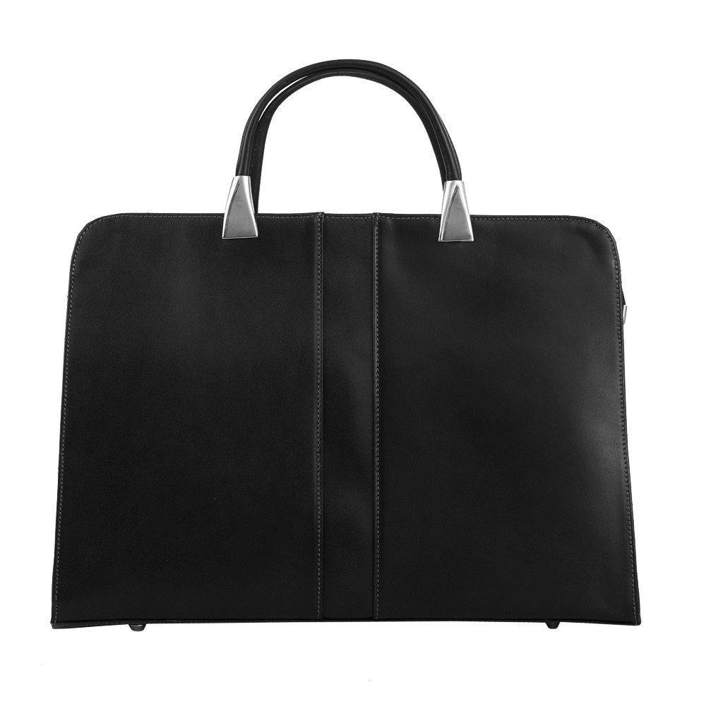 Włoska klasyczna A4 skórzana teczka / aktówka wykonana z wysokogatunkowej naturalnej gładkiej skóry licowej. Zamykana z góry na suwak. Teczka dwukomorowa przedzieloną dużą kieszenią na suwak na całej szerokości. Wewnątrz jedna kieszonka na zamek, jedna na telefon. Wnętrze wykończone trwałą, ciemną podszewką. Teczka od spodu usztywniona oraz podbita ćwiekami, co chroni ją przeciw uszkodzeniom. Elementy wykończenia w kolorze srebrnym. Dodatkowy długi, regulowany pasek na ramię o długości 54 - 104 cm.
