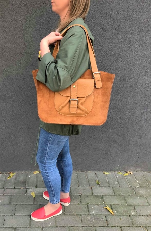 VERA PELLE włoska modna i pojemna skórzana A4 torebka wykonana z wysokogatunkowej naturalnej skóry licowej łącznej ze skórą zamszową. Wygodny dostęp do środka. Torebka jednokomorowa, od góry zamykana na zamek. Wewnątrz kieszonka na telefon + kieszonka na zamek + duża kieszeń na drobiazgi. Torebka od środka wykończona porządną materiałową podszewką w kolorze dopasowanym do skóry. Elementy wykończenia w kolorze srebrnym. Z przodu pod klapką kieszonka. Uszy z możliwością regulacji długości.