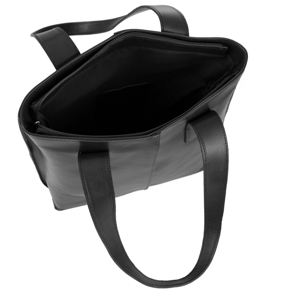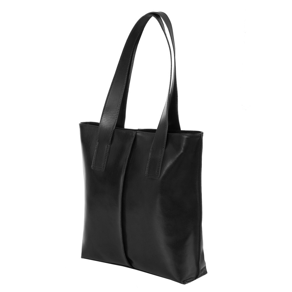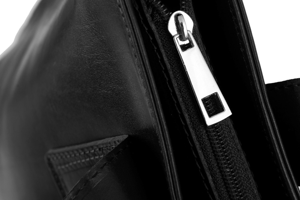 Włoska pojemna, modna skórzana torebka wykonana z wysokogatunkowej naturalnej skóry licowej. Wygodny dostęp do środka. Torebka dwukomorowa, przedzielona dużą kieszenią na zamek. Od góry zamykana na suwak. Wewnątrz dodatkowo kieszonka na telefon + kieszonka na zamek. Torebka od środka wykończona porządną, czarną podszewką. Dno usztywnione.