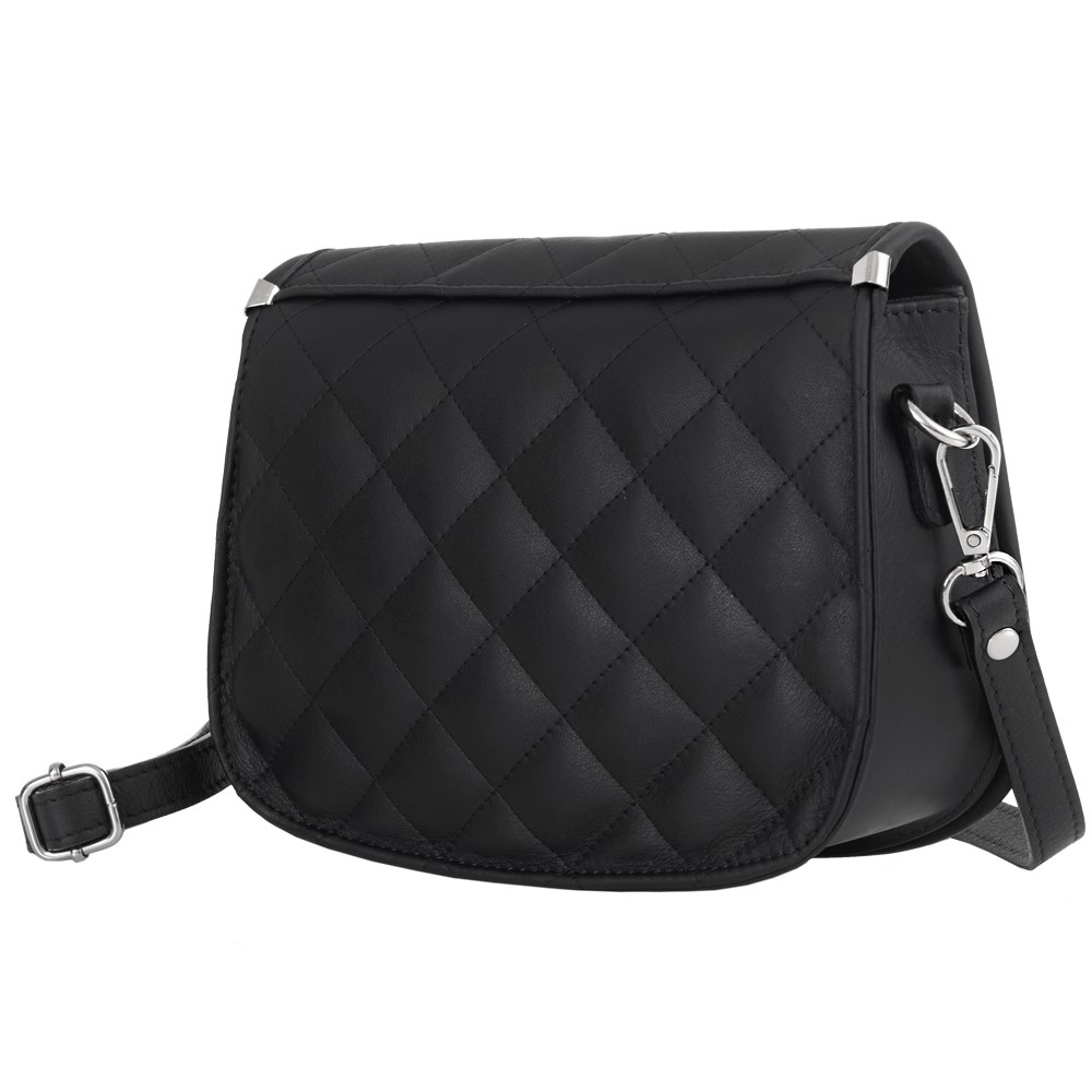 Włoska skórzana pikowana torebka wykonana z wysokogatunkowej naturalnej gładkiej skóry cielęcej VERA PELLE. Zamykana z góry na suwak + klapa na przekrętkę. Torebka jednokomorowa, wewnątrz jedna kieszonka. Wnętrze wykończone trwałą podszewką. Metalowe elementy wykończenia w kolorze srebrnym. Pasek z możliwością całkowitego odpięcia, dzięki czemu torebkę można nosić jako elegancką kopertówkę. Pasek z możliwością regulacji długości.