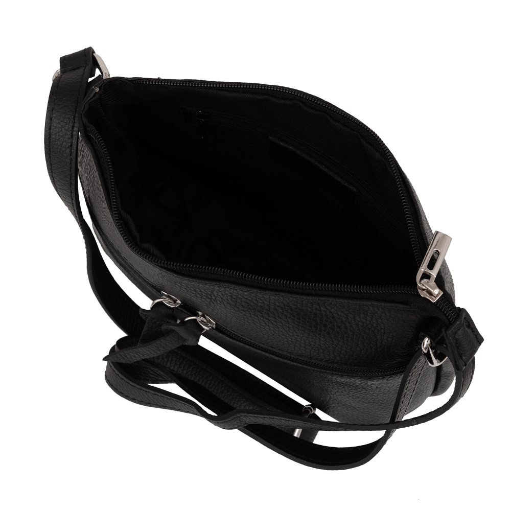 Włoska skórzana torebka listonoszka wykonana z wysokogatunkowej naturalnej skóry firmy VERA PELLE. Pojemny i poręczny model torebki. Torebka jednokomorowa, w środku kieszonka na zamek + kieszonka wsuwna na telefon. Metalowe elementy w kolorze srebrnym. Pasek z możliwością regulacji długości. Dodatkowa kieszonka z przodu i z tyłu torebki na zamek.