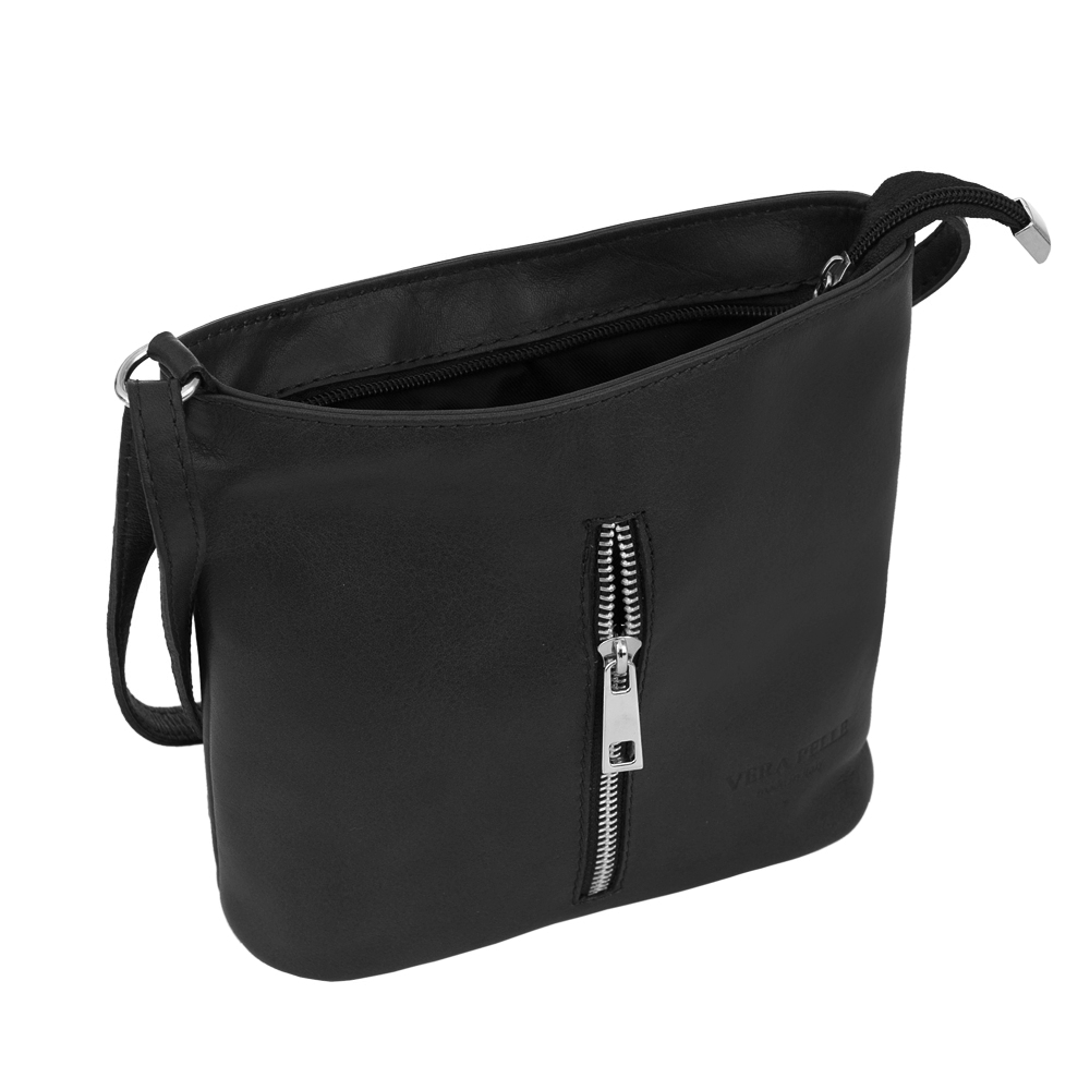 Włoska skórzana torebka / listonoszka wykonana z wysokogatunkowej naturalnej miękkiej skóry cielęcej. Zamykana od góry na zamek + klapka. Torebka jednokomorowa, wewnątrz dodatkowo jedna kieszonka na zamek + kieszonka na telefon + kieszonka z przodu + z tyłu torebki kieszonka na suwak. Wnętrze wykończone trwałą podszewką. Długi, regulowany pasek umożliwia wygodne noszenie na ramieniu lub przez ramię. Elementy wykończenia w kolorze srebrnym.