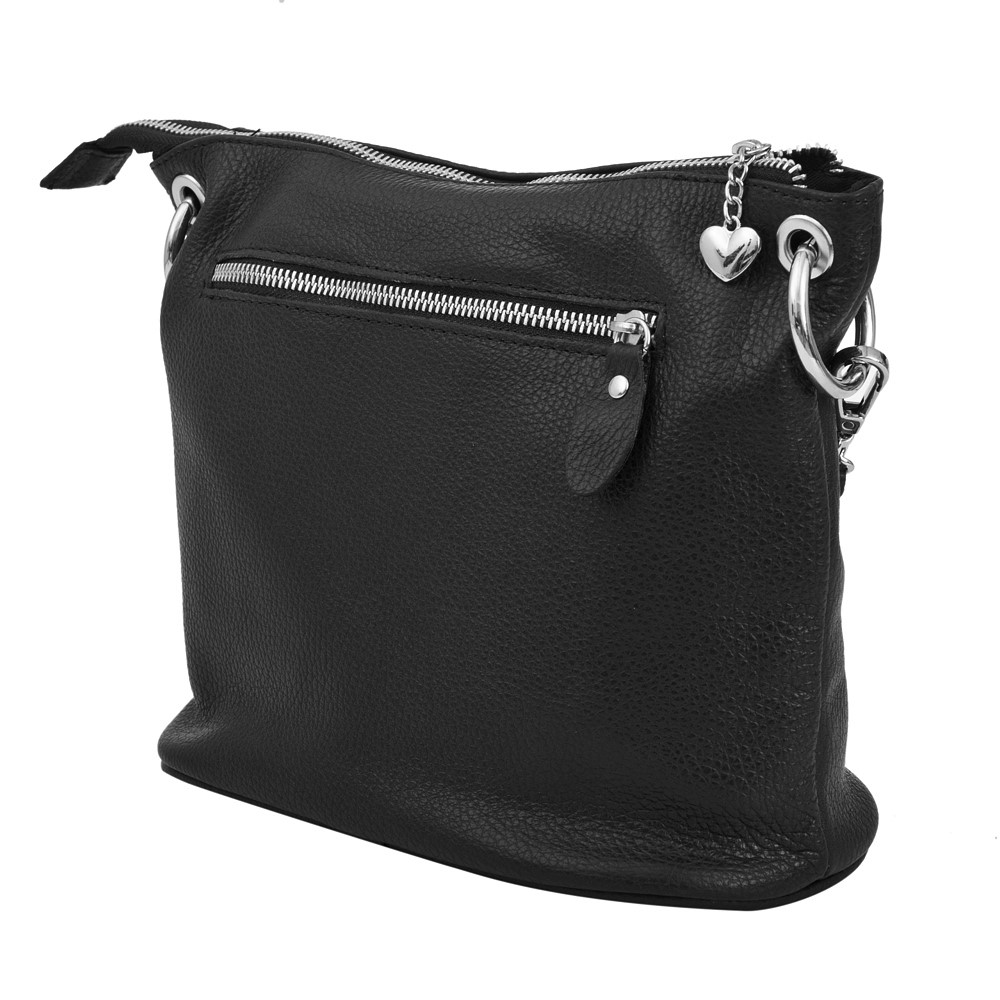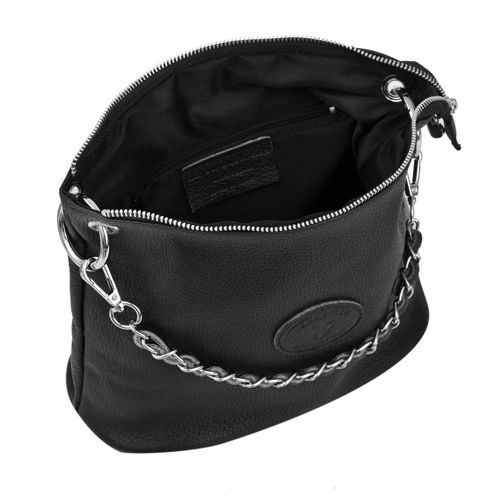 Włoska pojemna miękka skórzana torebka / listonoszka wykonana z naturalnej skóry licowej. Zamykana od góry na zamek na całej szerokości torebki. Torebka jednokomorowa, wewnątrz jedna kieszonka na zamek + dwie dodatkowe kieszonki. Wnętrze wykończone trwałą, ciemną podszewką. Długi, regulowany pasek umożliwia wygodne noszenie na ramieniu lub przez ramię. Dodatkowa pojemna kieszeń z tyłu na zamek. Elementy wykończenia w kolorze srebrnym. Możliwość noszenia w ręce na łańcuszku ( łańcuszek jest również całkowicie wypinany ). Długi skórzany pasek w komplecie.