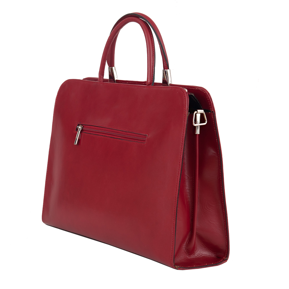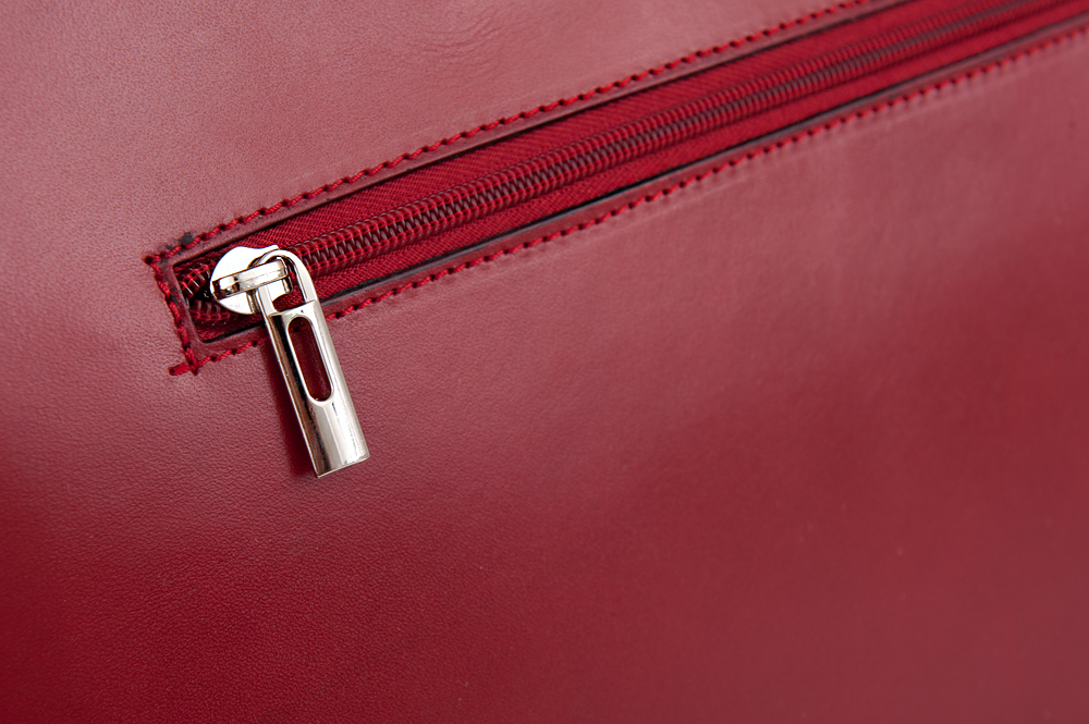 Włoska klasyczna A4 skórzana teczka / aktówka wykonana z wysokogatunkowej naturalnej gładkiej skóry licowej. Zamykana z góry na suwak. Teczka dwukomorowa przedzieloną dużą kieszenią na suwak na całej szerokości. Wewnątrz jedna kieszonka na zamek, jedna na telefon. Wnętrze wykończone trwałą, ciemną podszewką. Teczka od spodu usztywniona oraz podbita ćwiekami, co chroni ją przeciw uszkodzeniom. Elementy wykończenia w kolorze srebrnym. Dodatkowy długi, regulowany pasek na ramię o długości 54 - 104 cm.