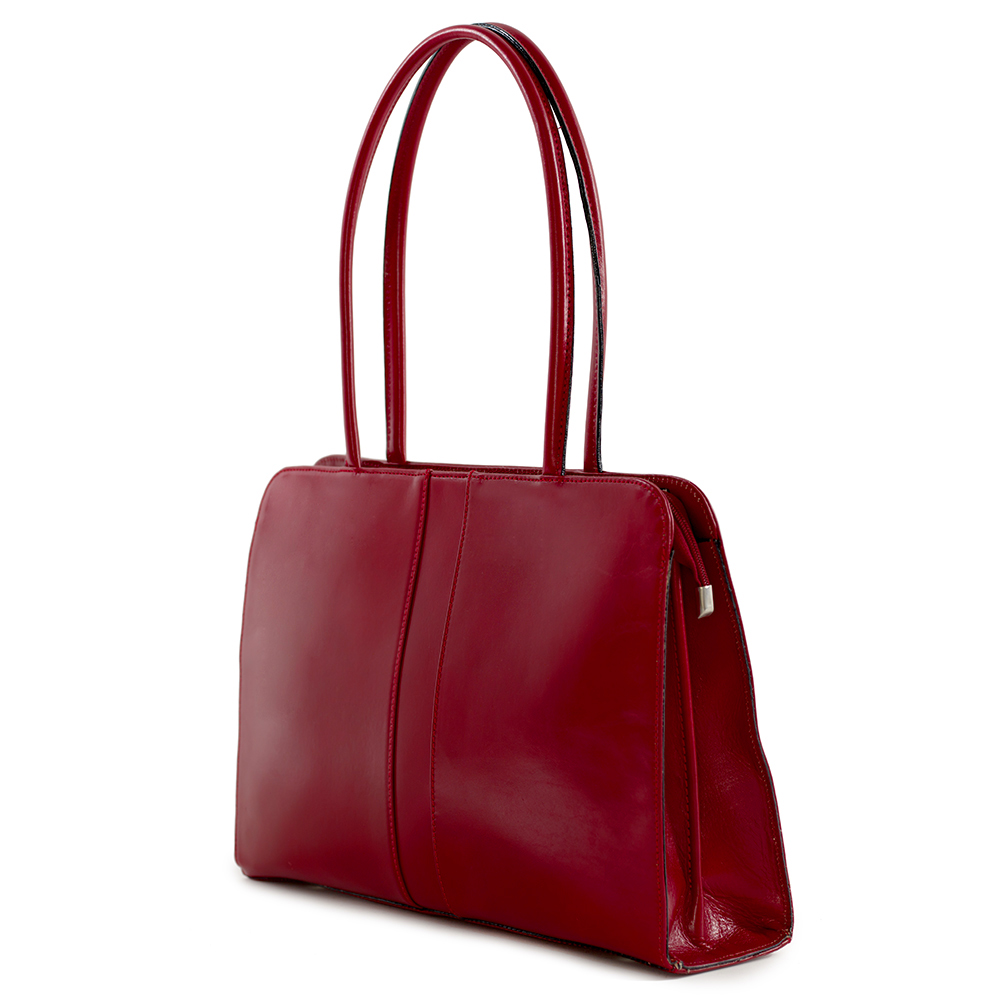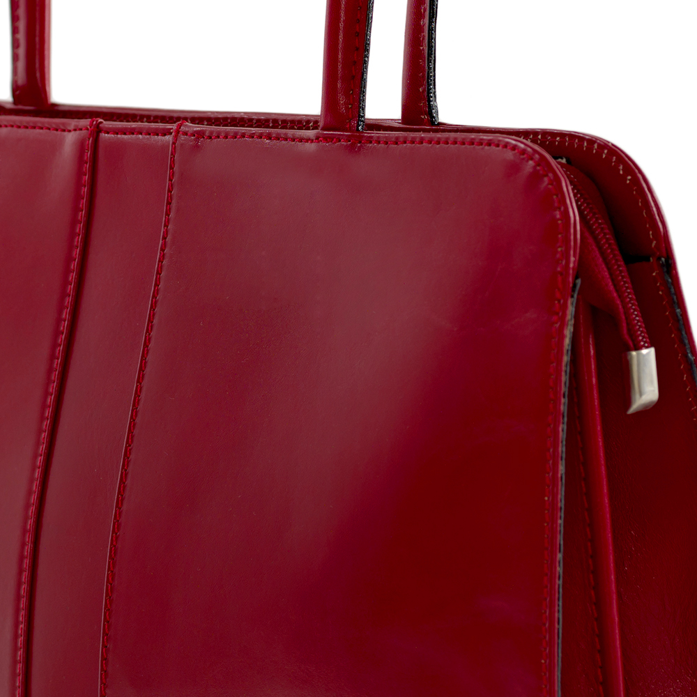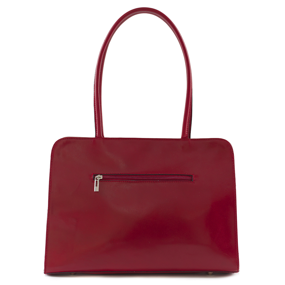 Włoska klasyczna A4 skórzana torebka / aktówka wykonana z wysokogatunkowej naturalnej gładkiej skóry licowej. Zamykana z góry na suwak. Torebka dwukomorowa przedzieloną dużą kieszenią na suwak na całej szerokości. Wewnątrz jedna kieszonka na zamek oraz jedna na telefon. Wnętrze wykończone trwałą podszewką. Dodatkowo z tyłu torebki kieszonka na suwak. Torebka od spodu usztywniona oraz podbita ćwiekami, co chroni ją przeciw uszkodzeniom. Elementy wykończenia w kolorze srebrnym.