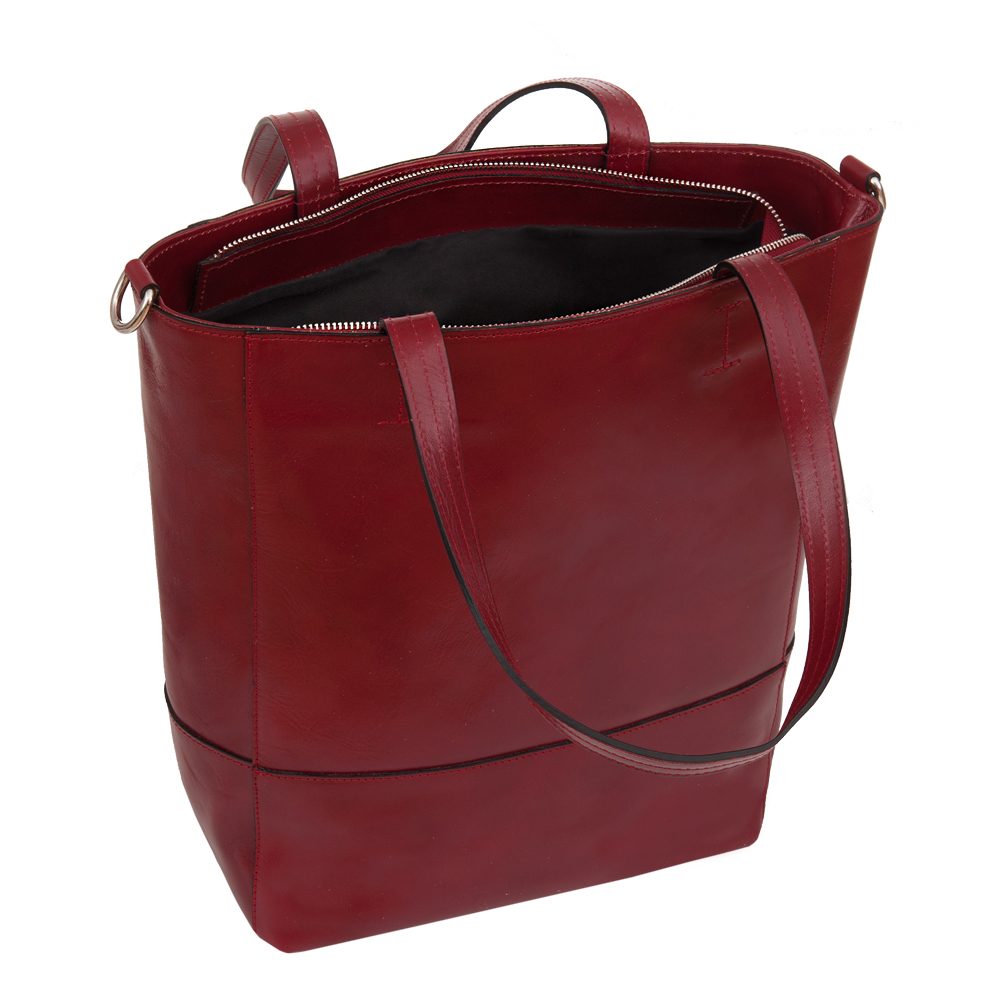 Włoska ekskluzywna A4 pojemna skórzana torebka wykonana z wysokogatunkowej naturalnej skóry licowej najwyższej jakości. Wygodny dostęp do środka, zamykana na zamek na całej szerokości. Torebka jednokomorowa, wewnątrz kieszonka na telefon + kieszonka na zamek. Torebka od środka wykończona porządną, czarną materiałowa podszewką. Od spodu torebka podbita metalowymi nóżkami. W komplecie dodatkowy długi, regulowany pasek o długości max. 122 cm. Metalowe elementy w kolorze srebrnym.