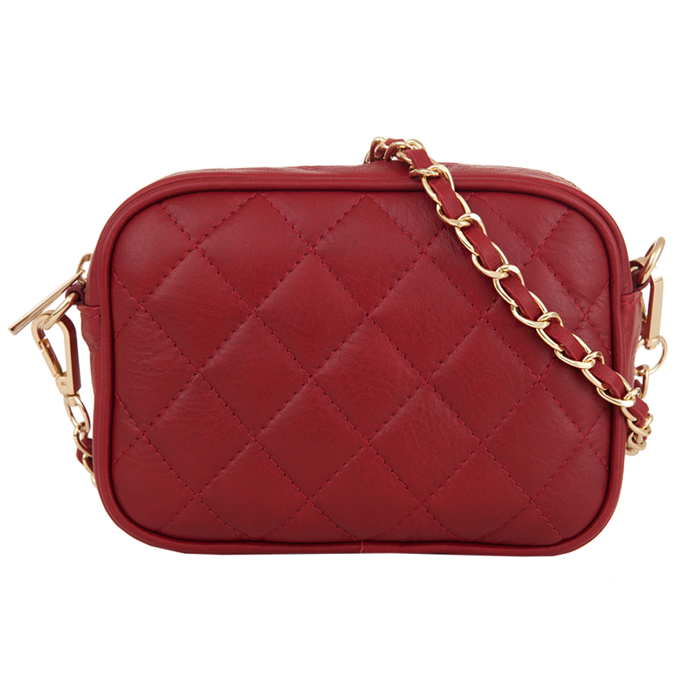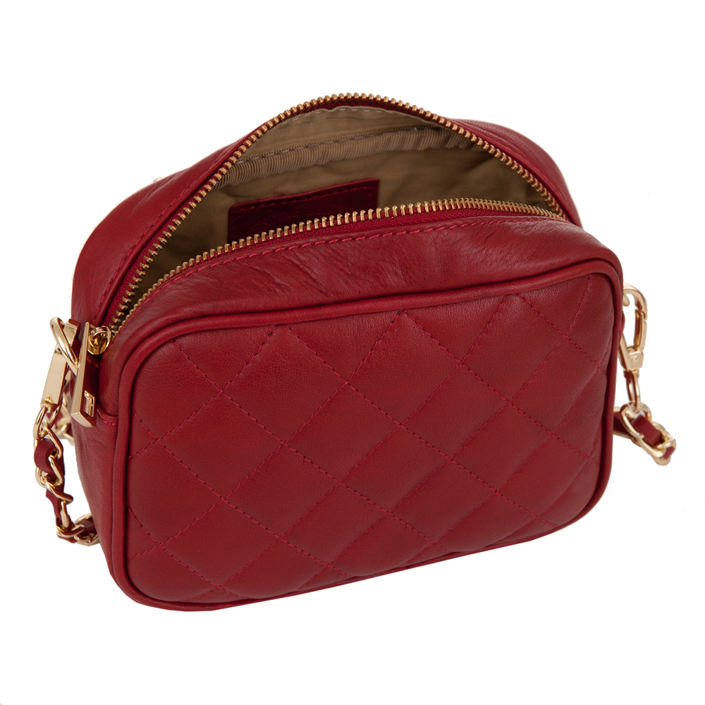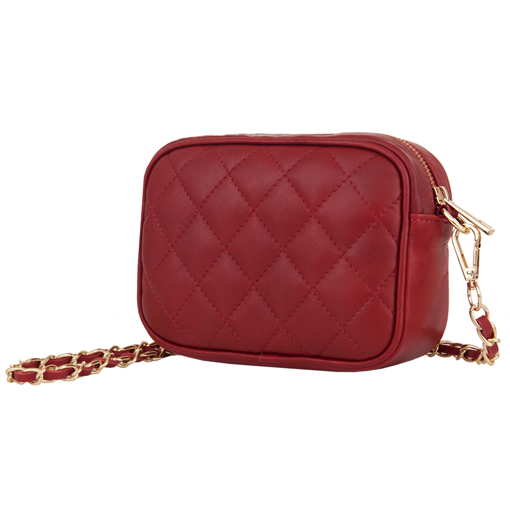 Włoska skórzana pikowana listonoszka wykonana z wysokogatunkowej naturalnej gładkiej skóry cielęcej VERA PELLE. Zamykana z góry na suwak. Torebka jednokomorowa, wewnątrz jedna kieszonka. Wnętrze wykończone trwałą podszewką. Elementy wykończenia w kolorze złotym. Pasek przepleciony naturalną skórą, z możliwością całkowitego odpięcia, dzięki czemu torebkę można nosić jako elegancką kopertówkę.