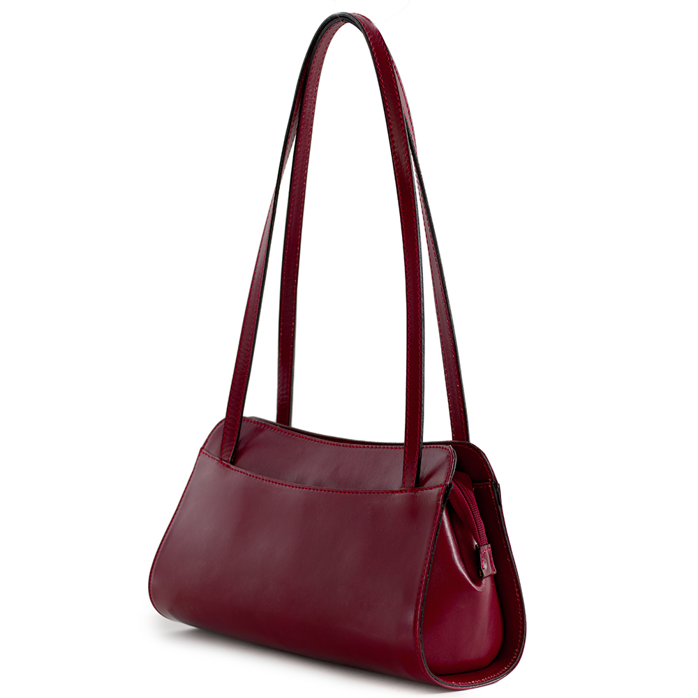 Włoska skórzana podłużna torebka wykonana z wysokogatunkowej naturalnej gładkiej skóry licowej. Zamykana z góry na suwak. Torebka jednokomorowa, wewnątrz przedzielona kieszonką na suwak + jedna kieszonka na zamek. Dodatkowo torebka posiada z przodu i z tyłu kieszonkę na magnes. Wnętrze wykończone trwałą podszewką.