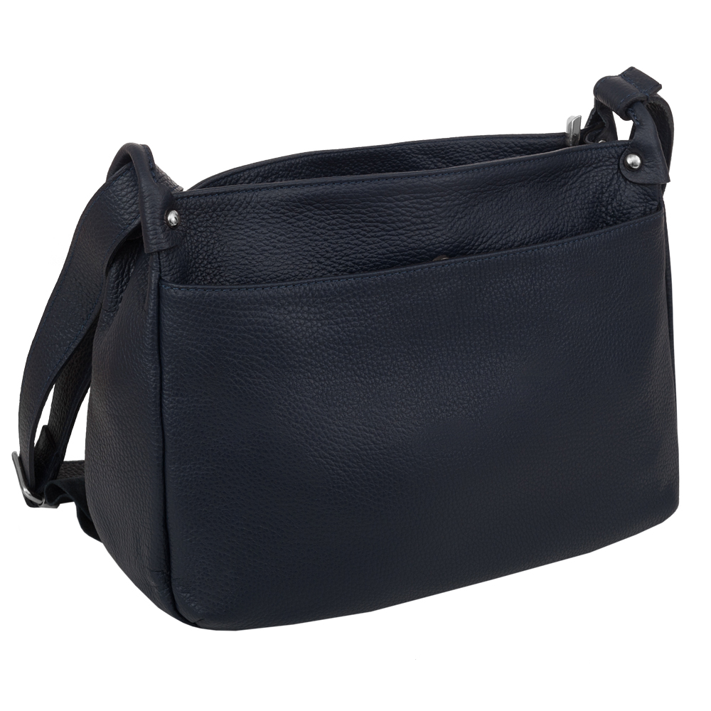 Vera Pelle - Włoska pojemna skórzana torebka listonoszka wykonana z wysokogatunkowej miękkiej, naturalnej skóry licowej. Zamykana na dużą zamszową miekką klapę + zamek na całej szerokości. Torebka jednokomorowa, wewnątrz jedna kieszonka na zamek + miejsce na telefon + dodatkowa kieszeń pod klapą. Wnętrze wykończone trwałą, materiałową czarną podszewką. Długi, szeroki regulowany pasek umożliwia wygodne noszenie na ramieniu lub przez ramię. Dodatkowa kieszeń z tyłu torby.