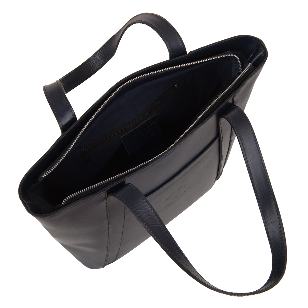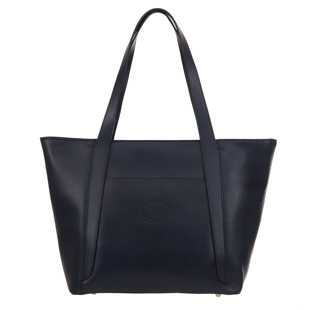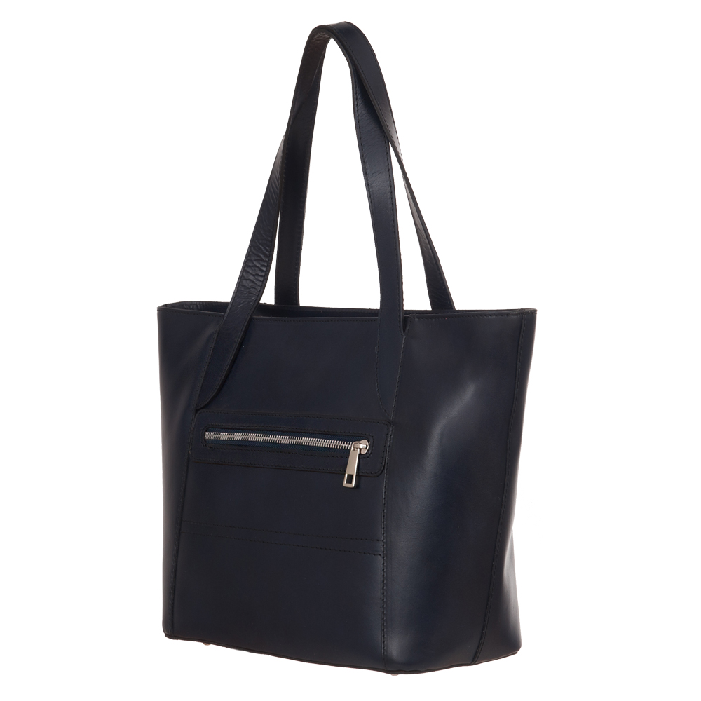 Włoska klasyczna skórzana torebka wykonana z wysokogatunkowej naturalnej gładkiej skóry licowej. Zamykana z góry na suwak na całej szerokości. Torebka dwukomorowa przedzieloną dużą kieszenią na suwak. Wewnątrz dodatkowo jedna kieszonka na zamek oraz jedna na telefon. Wnętrze wykończone trwałą, ciemną podszewką. Dodatkowo z tyłu torebki kieszonka na suwak + kieszeń z przodu. Torebka od spodu usztywniona oraz podbita ćwiekami, co chroni ją przeciw uszkodzeniom i zadrapaniom. Elementy wykończenia w kolorze srebrnym.