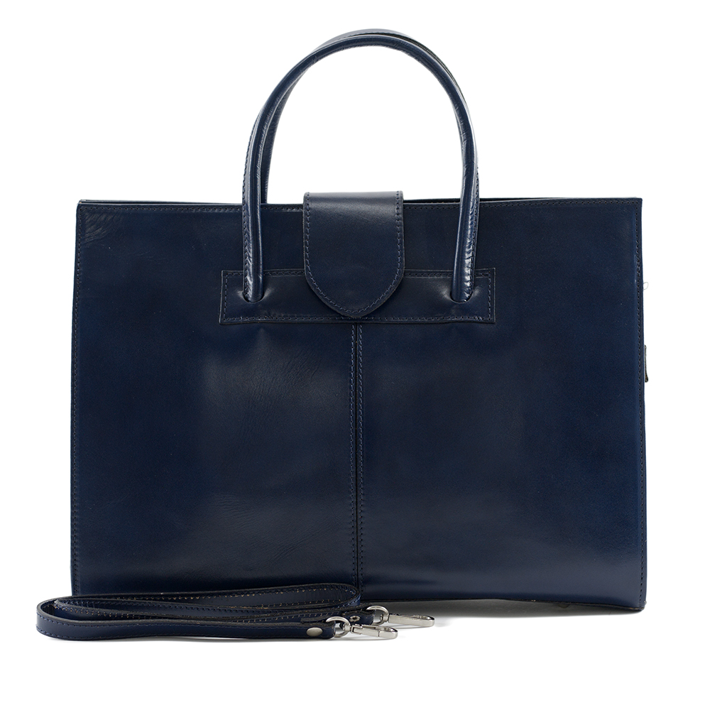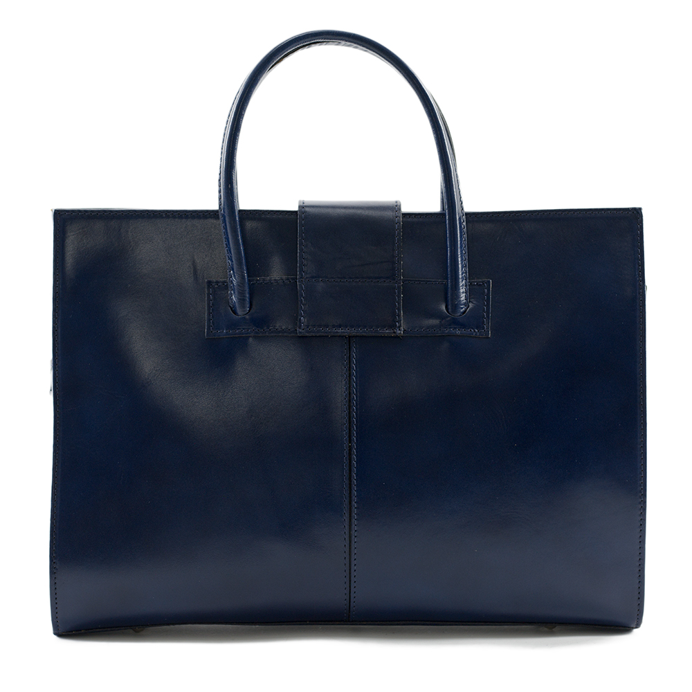 Włoska klasyczna A4 skórzana teczka / aktówka wykonana z wysokogatunkowej naturalnej gładkiej skóry licowej. Zamykana z góry na suwak + klapa na magnes. Teczka dwukomorowa przedzieloną dużą kieszenią na suwak na całej szerokości. Wewnątrz jedna kieszonka na zamek, jedna na telefon + miejsce na długopisy, wizytówki. Wnętrze wykończone trwałą, czarną podszewką. Teczka od spodu usztywniona oraz podbita ćwiekami, co chroni ją przeciw uszkodzeniom. Elementy wykończenia w kolorze srebrnym. Dodatkowy długi pasek na ramię o długości 92 cm.