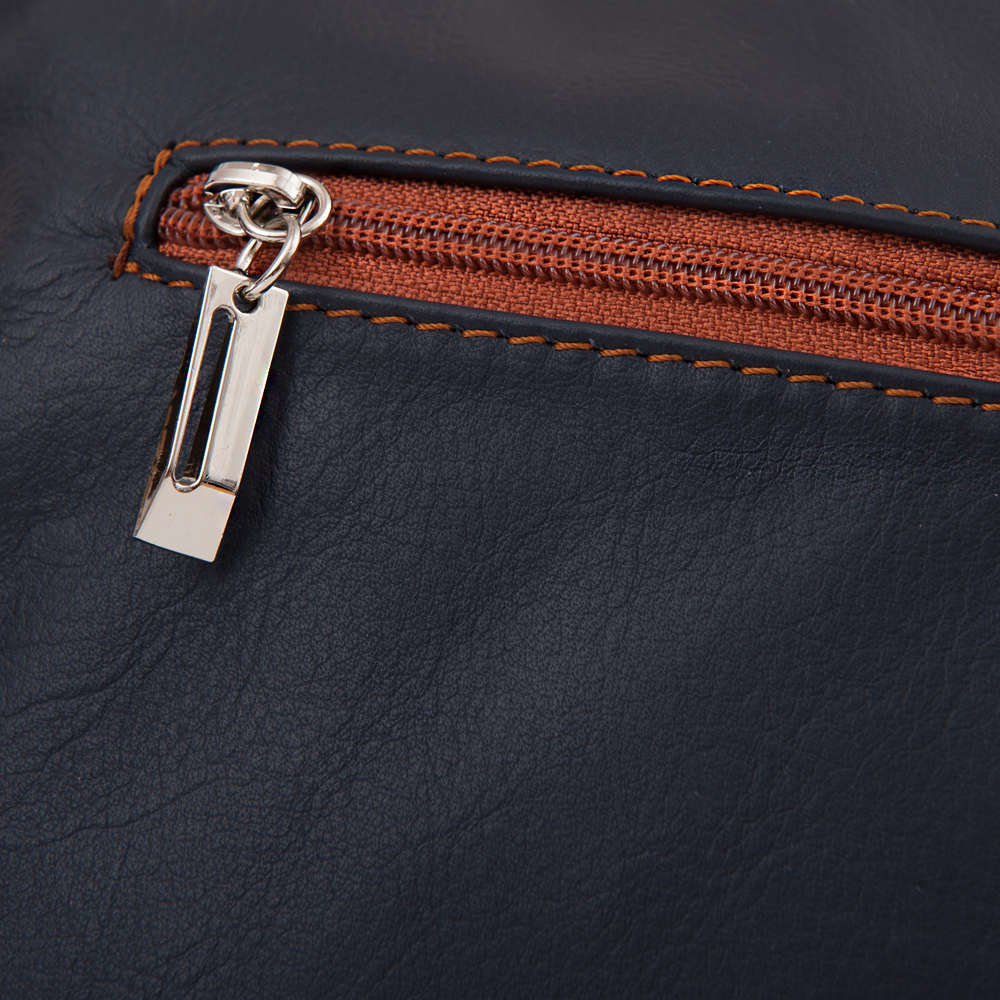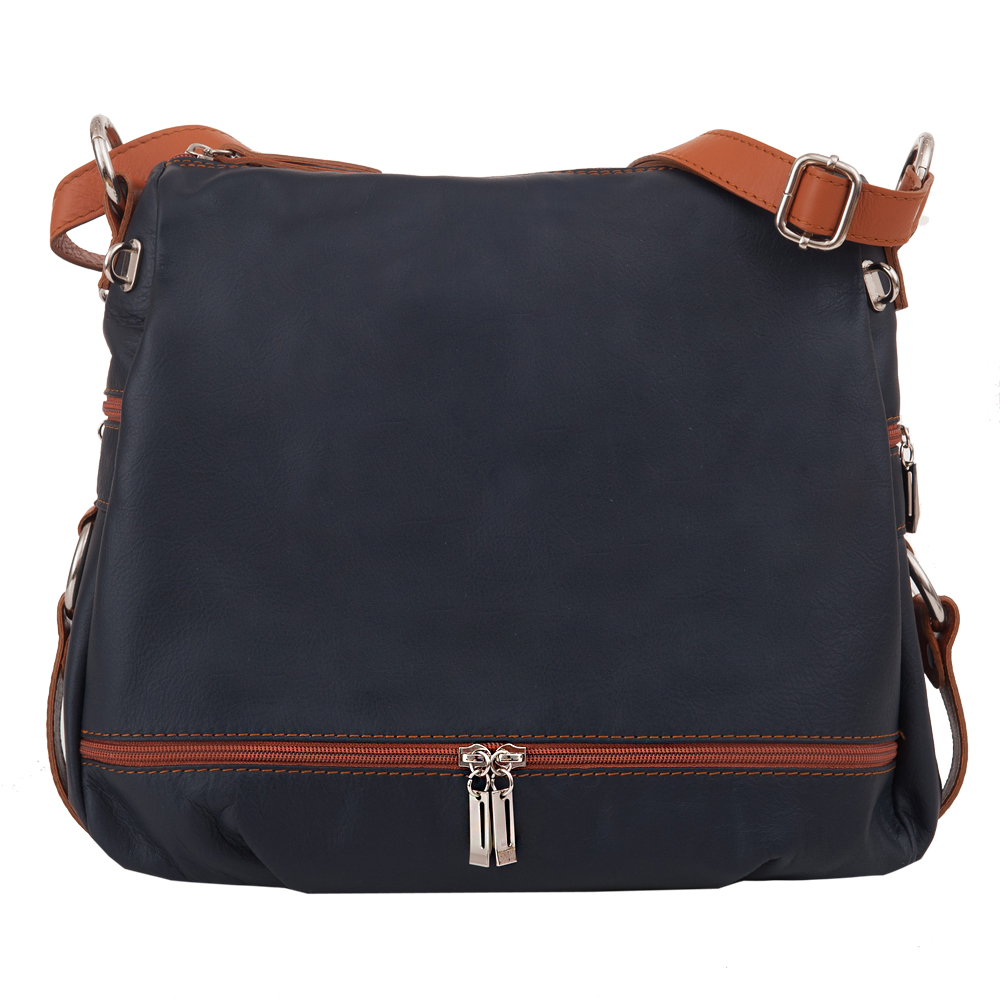 Włoska skórzana torebka / worek wykonana z wysokogatunkowej naturalnej gładkiej skóry cielęcej. Zamykana na suwak. Torebka jednokomorowa przedzielona kieszenią na suwak + w środku jedna kieszonka na zamek oraz jedna na telefon. Wnętrze wykończone trwałą podszewką kolorystycznie dopasowaną do skóry. Długi, regulowany pasek umożliwia wygodne noszenie na ramieniu. Dodatkowa kieszonka z tyłu torebki na suwak + kieszonka z przodu. Boczne uszy można regulować i przepinać ( możliwość całkowitego wypięcia ).