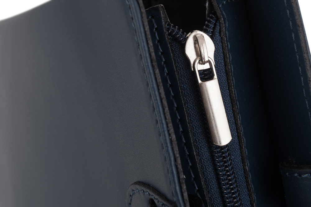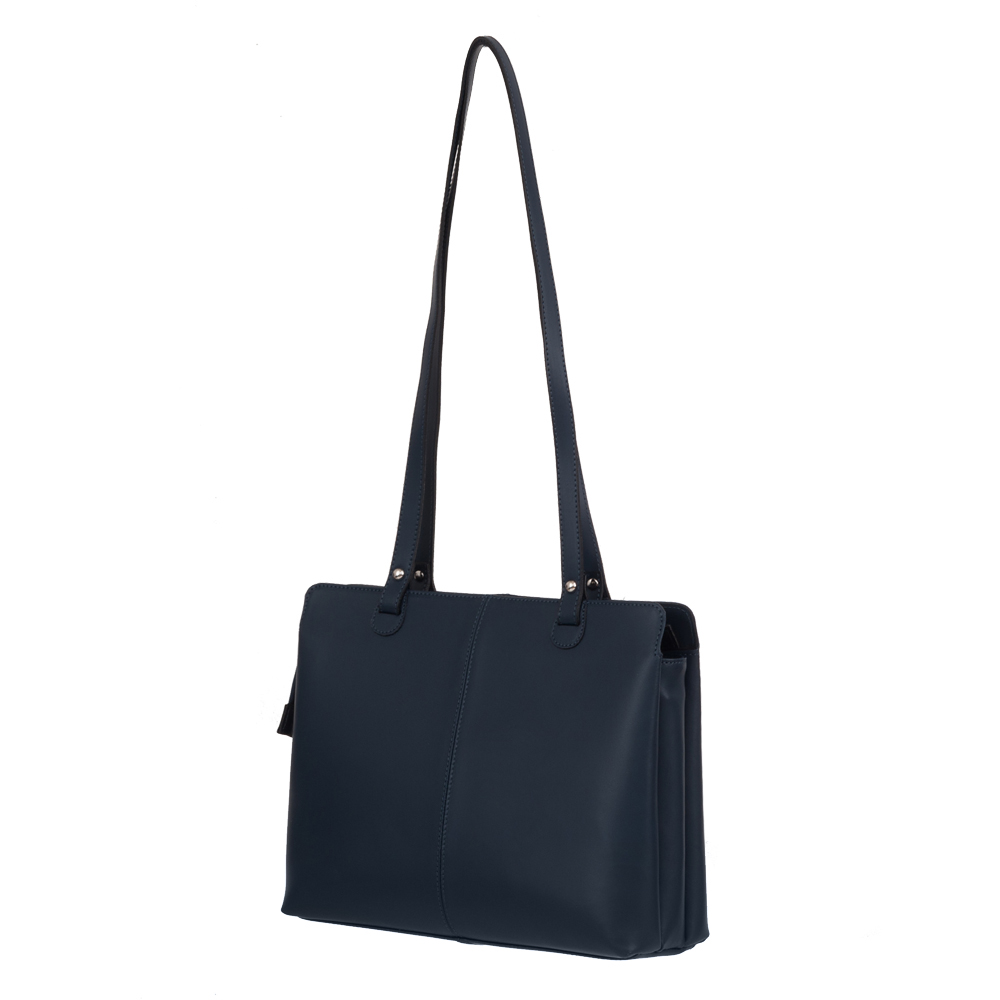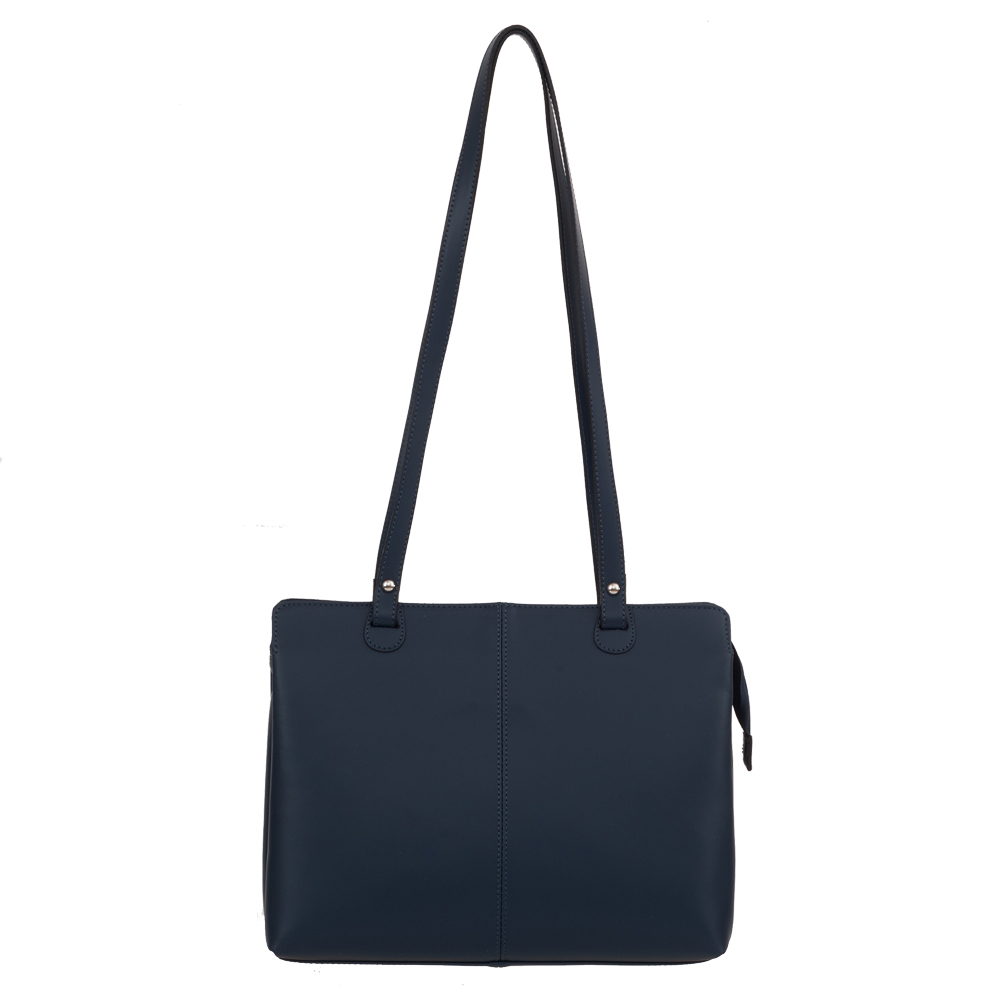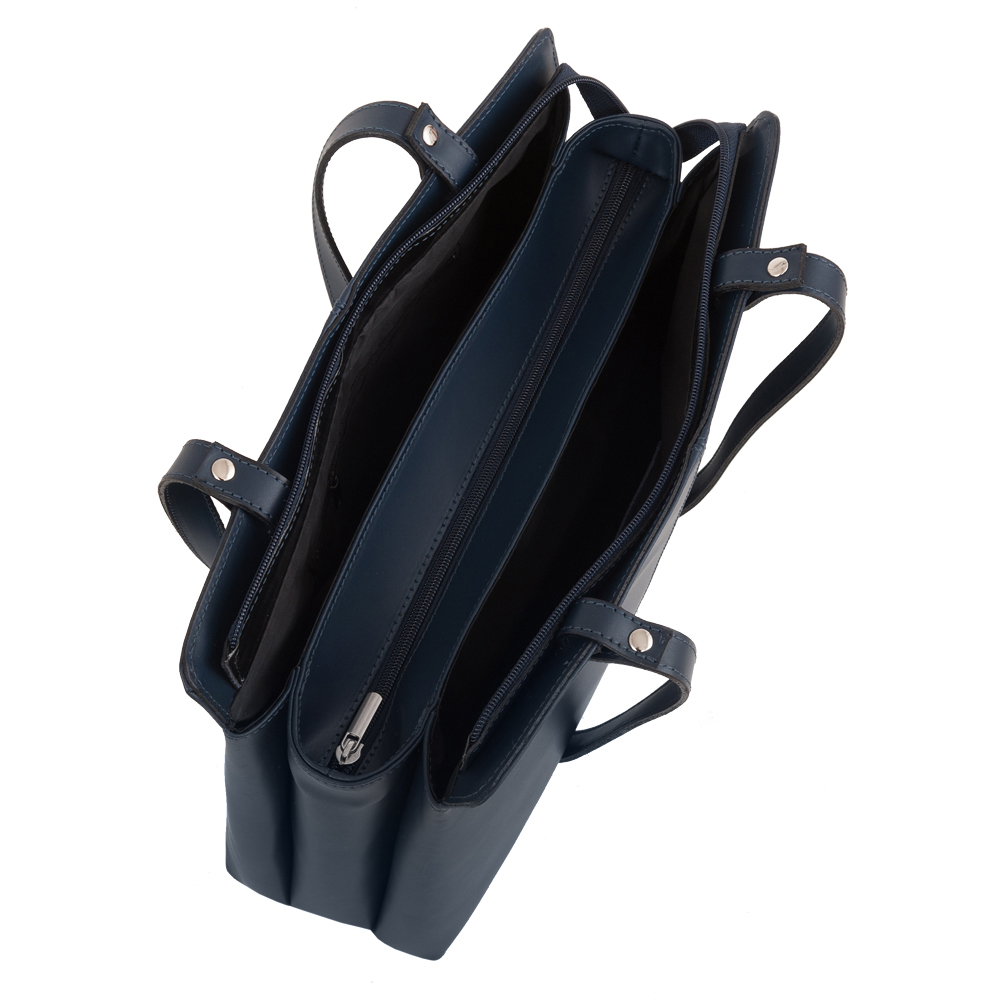 Włoska klasyczna skórzana torebka wykonana z wysokogatunkowej naturalnej gładkiej skóry matowej. Zamykana z góry na suwak na całej szerokości. Torebka trzykomorowa przedzieloną dużą komorą na suwak. Wewnątrz jedna kieszonka na zamek oraz jedna na telefon. Wnętrze wykończone trwałą podszewką. Torebka od spodu usztywniona. Elementy wykończenia w kolorze srebrnym.