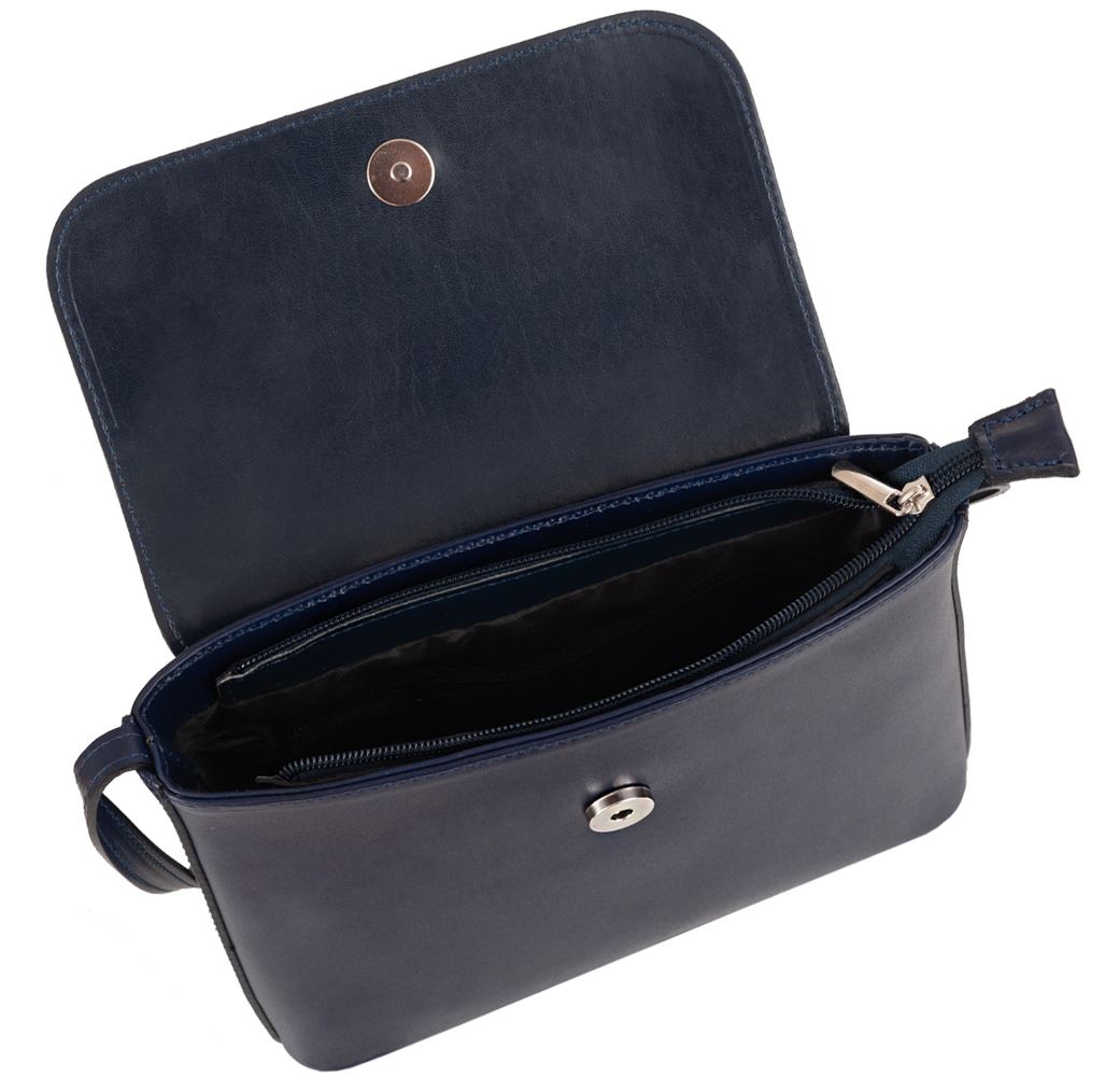 Włoska skórzana listonoszka wykonana z wysokogatunkowej naturalnej gładkiej skóry licowej firmy Pelle. Zamykana z góry na suwak + klapa na magnes. Spód torebki usztywniony. Torebka jednokomorowa, wewnątrz jedna kieszonka na zamek oraz jedna na telefon. Wnętrze wykończone trwałą podszewką. Z tyłu kieszonka na suwak. Długi, regulowany pasek umożliwia wygodne noszenie na ramieniu.