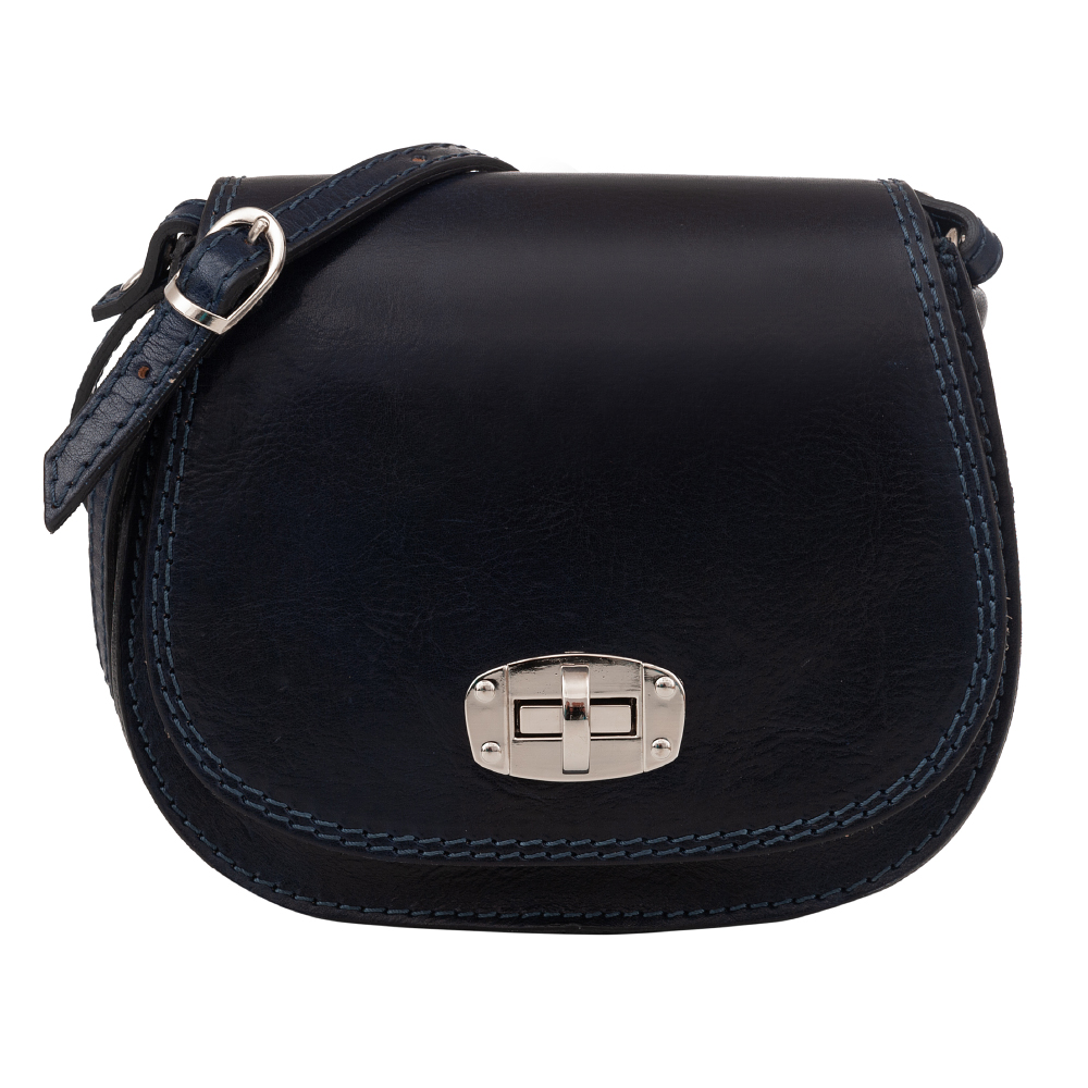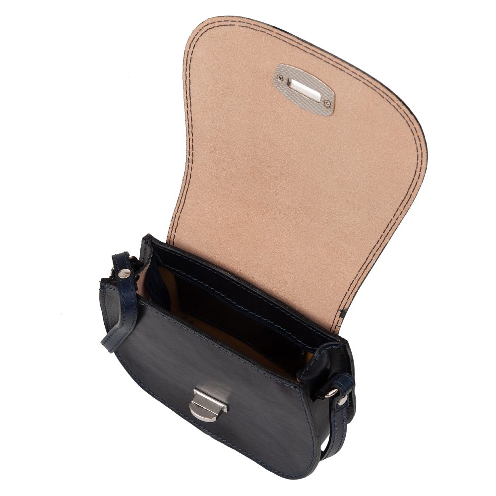 GENUINE LEATHER - VINTAGE - Włoska skórzana listonoszka wykonana z wysokogatunkowej naturalnej gładkiej skóry licowej firmy Vera Pelle. Zamykana z góry na zamek + klapa na przekrętkę. Torebka jednokomorowa, wewnątrz jedna mała kieszonka. Wnętrze wykończone surową skórą. Metalowe elementy w kolorze srebrnym.Długi regulowany pasek do max. 134 cm.