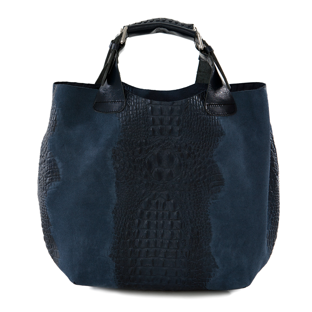 Włoska skórzana torebka shopper bag wykonana z wysokogatunkowej naturalnej gładkiej skóry licowej. Wygodny dostęp do środka. Torebka jednokomorowa przedzielona dużą kieszenią (wsadem) na suwak na całej szerokości torebki. Wkład w torebce wyciągany, dzięki czemu torebka robi się bardzo pojemna. Wewnątrz mała kieszonka na telefon. Torebka od środka wykończona surową skórą. Wkład wykonany z trwałej podszewki wykończonej skórą naturalną. Elementy wykończenia w kolorze srebrnym. Dodatkowy regulowany pasek o długości do 120 cm.