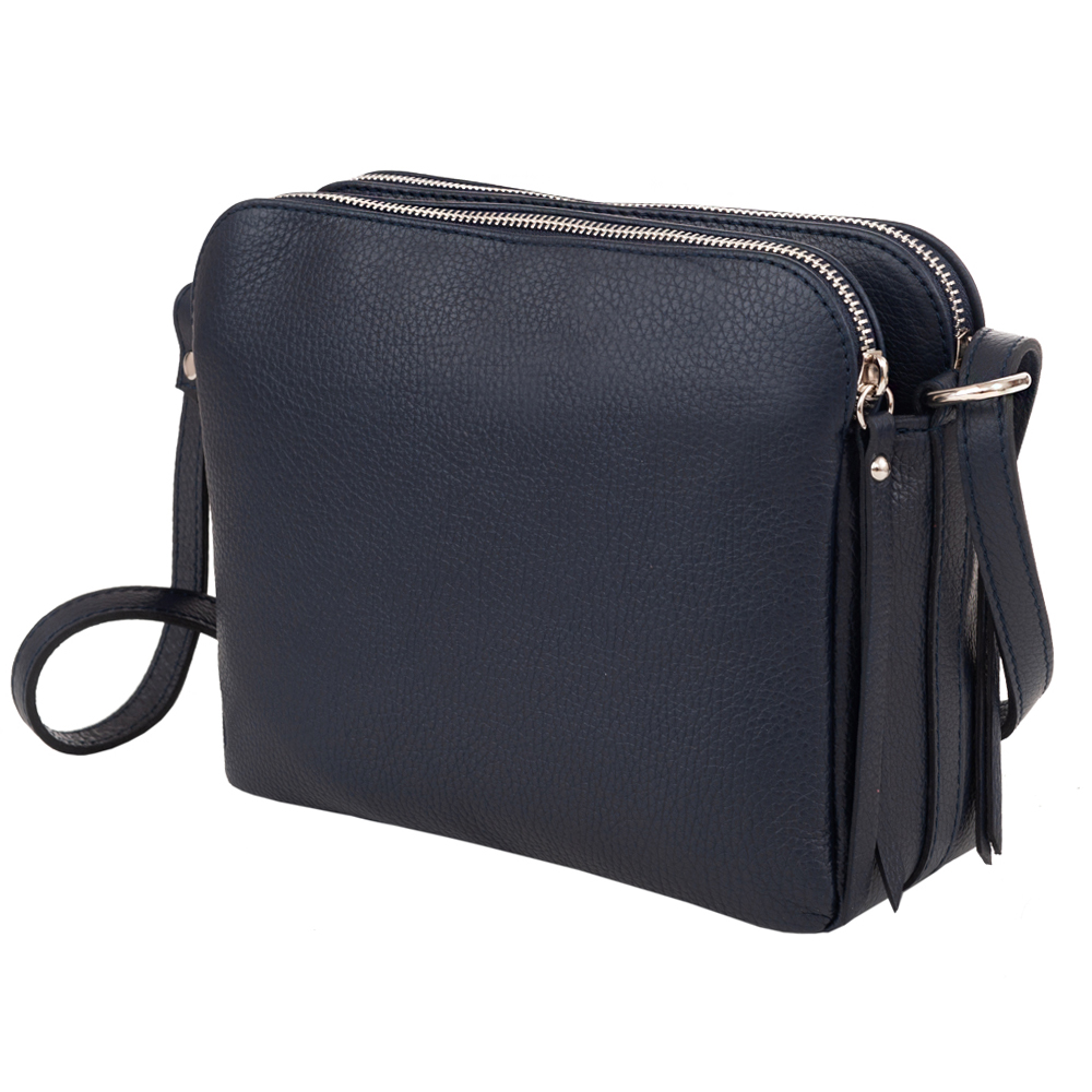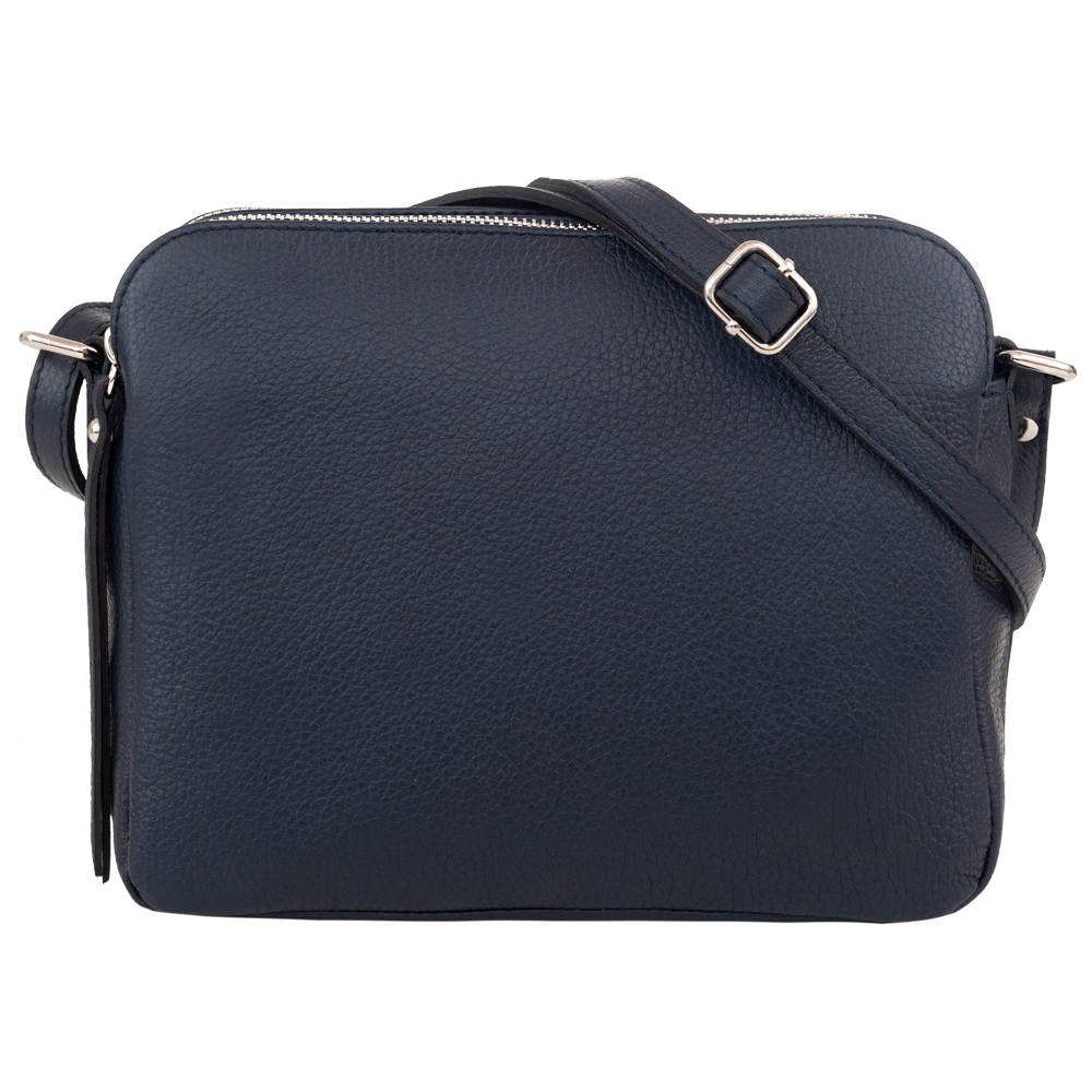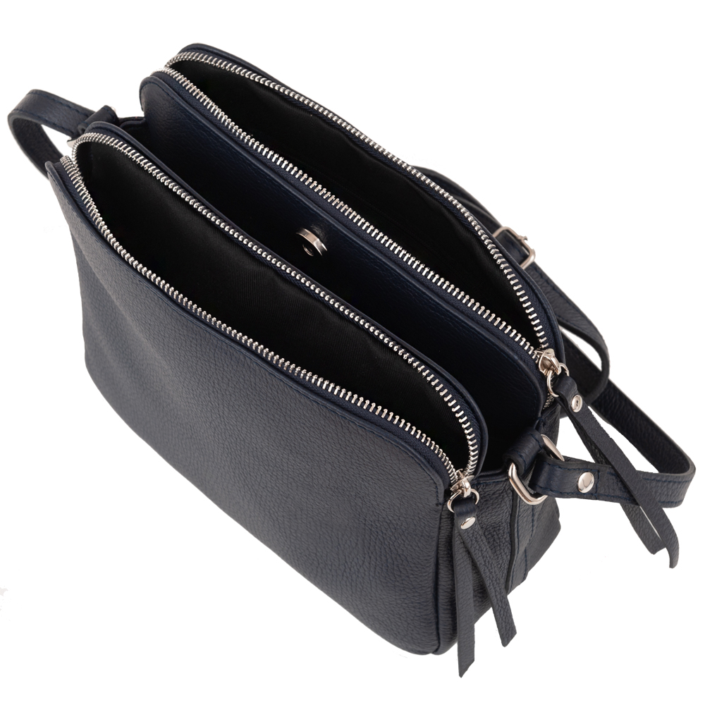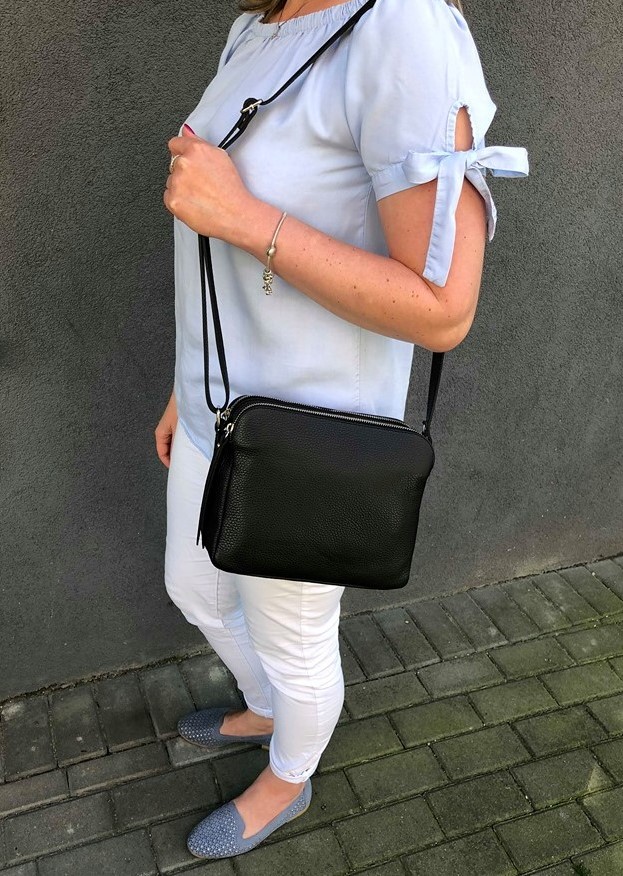 Vera Pelle - Włoska skórzana torebka listonoszka wykonana z wysokogatunkowej miękkiej naturalnej skóry. Zamykana od góry na zamek na całej szerokości. Torebka trzykomorowa, dwie komory na zamek + środkowa komora na magnes. Wewnątrz dodatkowo jedna kieszonka na telefon + kieszonka na zamek. Miękkie ucho umożliwia wygodne noszenie na ramieniu lub przez ramię. Możliwość przedłużenia paska, aby nosić torebkę jak listonoszkę. Metalowe elementy w kolorze srebrnym.