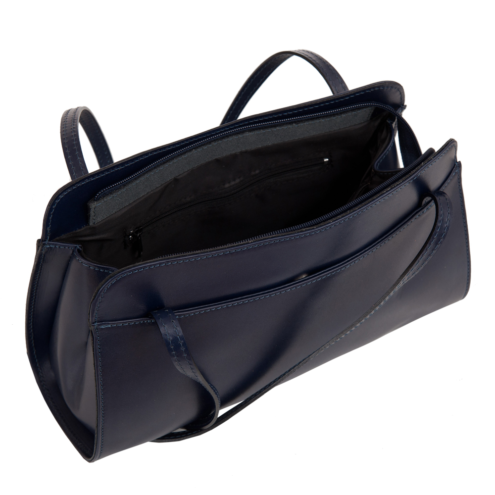 Włoska skórzana podłużna torebka wykonana z wysokogatunkowej naturalnej gładkiej skóry licowej. Zamykana z góry na suwak. Torebka jednokomorowa, wewnątrz przedzielona kieszonką na suwak + jedna kieszonka na zamek. Dodatkowo torebka posiada z przodu i z tyłu kieszonkę na magnes. Wnętrze wykończone trwałą podszewką.