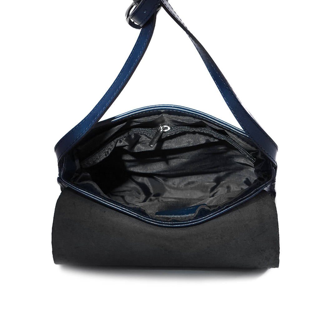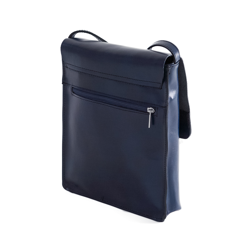 Włoska skórzana listonoszka wykonana z wysokogatunkowej naturalnej gładkiej skóry licowej. Zamykana na klapę z magnesem. Torebka jednokomorowa, wewnątrz dwie kieszonki na zamek oraz jedna na telefon. Wnętrze wykończone trwałą podszewką. Z tyłu kieszonka na suwak. Długi, regulowany pasek umożliwia wygodne noszenie na ramieniu.