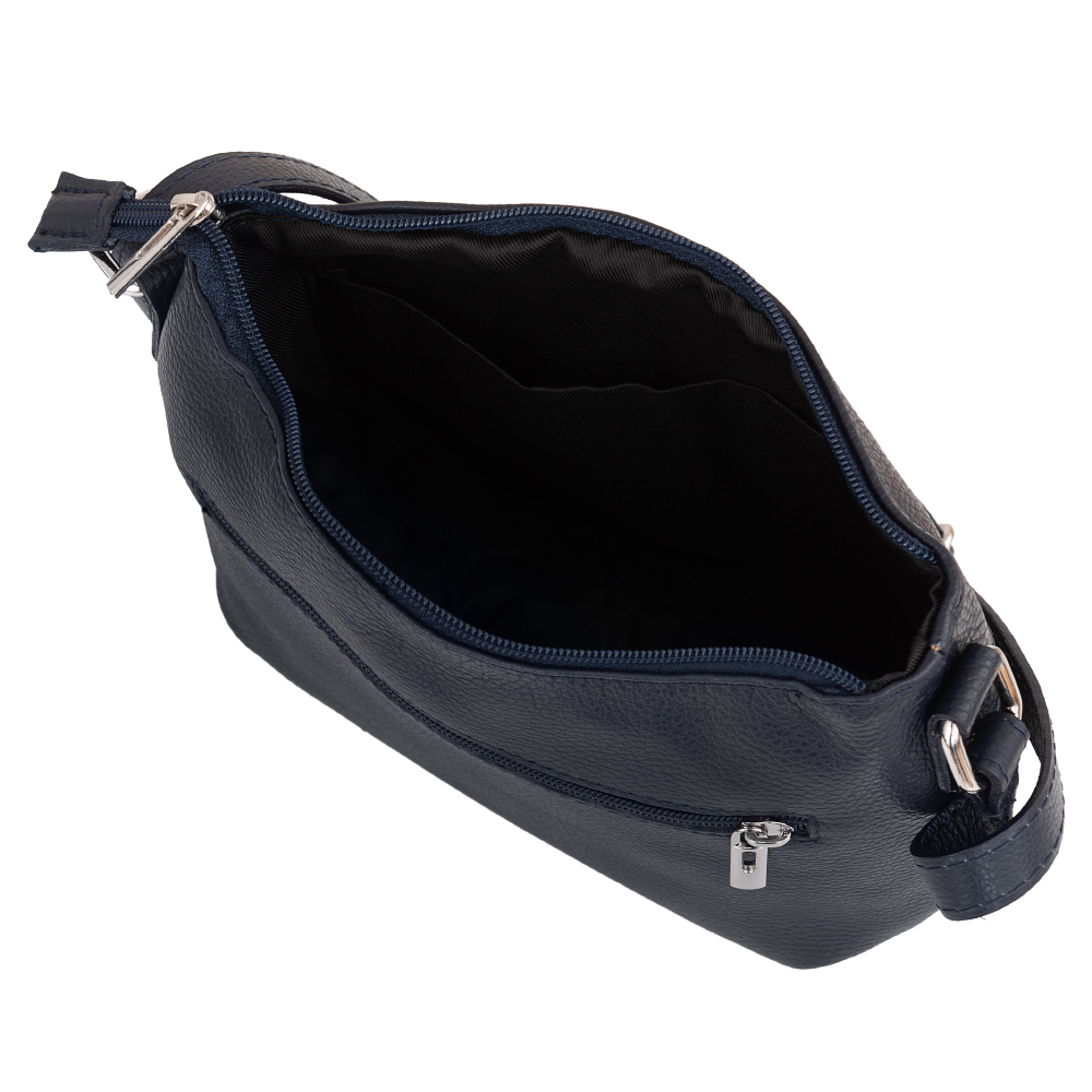 Włoska skórzana torebka listonoszka wykonana z wysokogatunkowej naturalnej skóry firmy VERA PELLE. Pojemny i poręczny model torebki. Torebka jednokomorowa, w środku kieszonka na zamek + kieszonka wsuwna na telefon.Metalowe elementy w kolorze srebrnym.Pasek z możliwością regulacji długości.Dodatkowa kieszonka z przodu i z tyłu torebki na zamek.