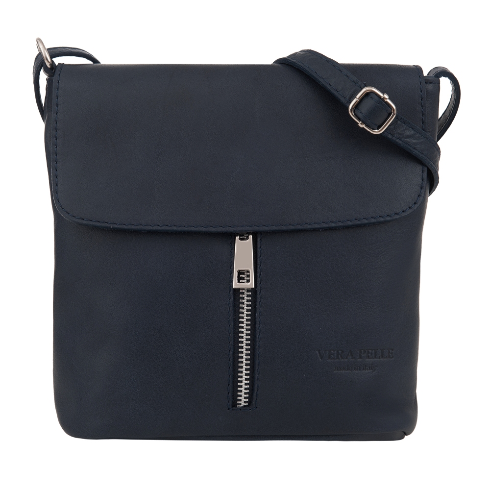Włoska skórzana duża torebka / listonoszka wykonana z wysokogatunkowej naturalnej miękkiej skóry cielęcej. Zamykana od góry na zamek + klapka. Torebka jednokomorowa, wewnątrz dodatkowo jedna kieszonka na zamek + kieszonka na telefon + z tyłu torebki kieszonka na suwak. Wnętrze wykończone trwałą podszewką. Długi, regulowany pasek umożliwia wygodne noszenie na ramieniu lub przez ramię. Elementy wykończenia w kolorze srebrnym.
