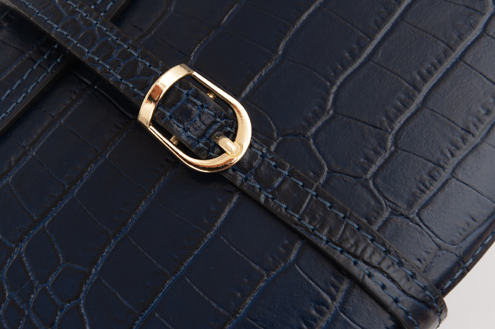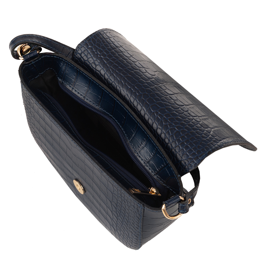 Hit sezonu! Oryginalna i modna włoska skórzana torebka listonoszka wykonana z wysokogatunkowej naturalnej skóry licowej z fakturą łuski krokodyla firmy Vera Pelle. Zamykana z góry na suwak + klapa na magnes. Torebka jednokomorowa, wewnątrz jedna kieszonka na zamek. Wnętrze wykończone trwałą, materiałową czarną podszewką. Długi, regulowany pasek umożliwia wygodne noszenie na ramieniu lub przez ramię. Elementy wykończenia, zamki w kolorze złotym.