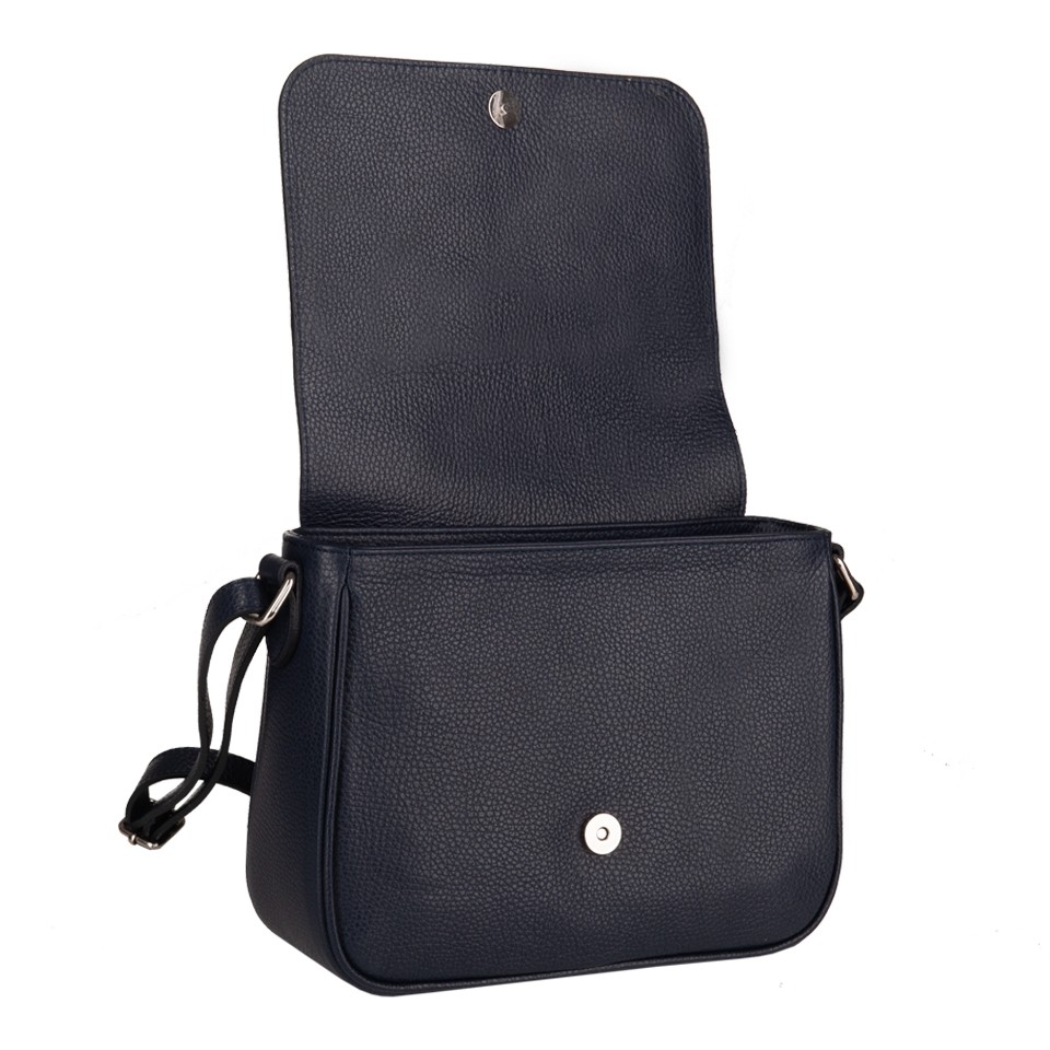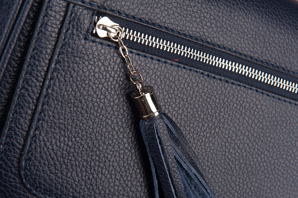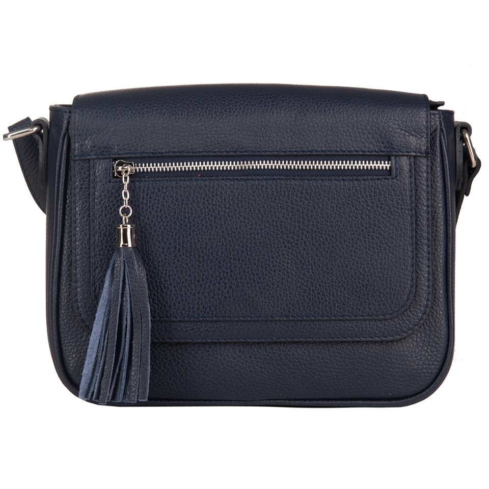 Vera Pelle - Włoska klasyczna skórzana torebka / listonoszka z klapą wykonana w całości ze skóry naturalnej. Skóra mocna, odporna na zarysowania. Zamykana z góry na zamek na całej szerokości + klapa na magnes. Torebka jednokomorowa + w środku kieszonka na zamek + kieszonka na telefon. Dodatkowo z tyłu torebki kieszeń na zamek + kieszonka z przodu na klapie zakończona modnym pękiem frędzli. Wnętrze wykończone trwałą, materiałową podszewką. Metalowe elementy w kolorze srebrnym. Dno lekko usztywnione. Pełna regulacja długości paska. Torebkę można swobodnie nosić przez ramię jako listonoszkę.